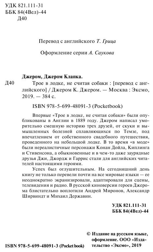 Трое в лодке не считая собаки (Джером Клапка Джером); Эксмо, Редакция 1, 2017