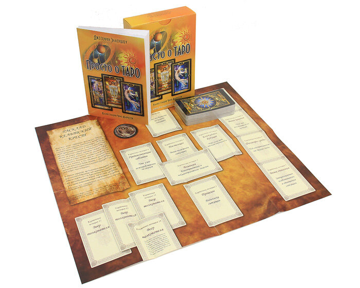 Хочу поделиться восторженным отзывом о наборе " Просто о Таро" . Супер!!! Все супер!!! Отличное качество карт " Золоченое Таро!, очень яркие краски, приятные и позитивные картинки. Содержание карт простое и понятное. Я сразу влюбилась! Изначально брала в надежде использовать для всех, но оставила себе любимой. Книга написана простым языком, даны по шагам инструкции: что делать, как и зачем. Покупайте в комплекте!