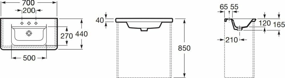 Накладная раковина для мебели с отверстием под смеситель. Размеры 70х44 см. Цвет белый