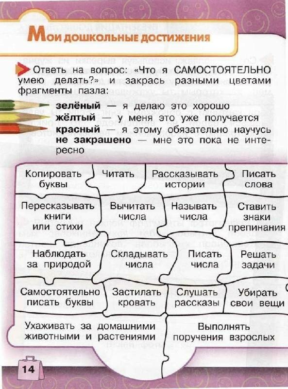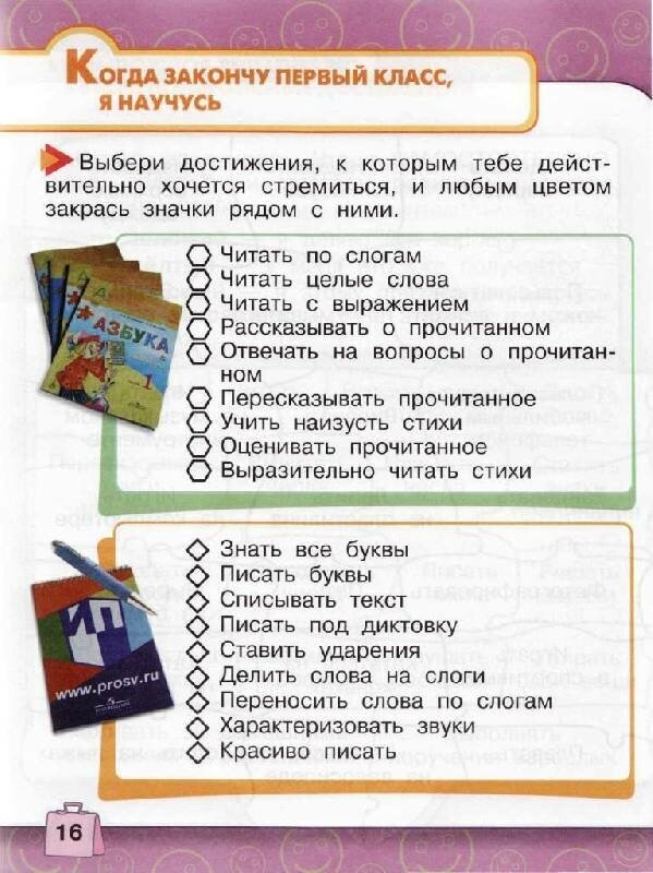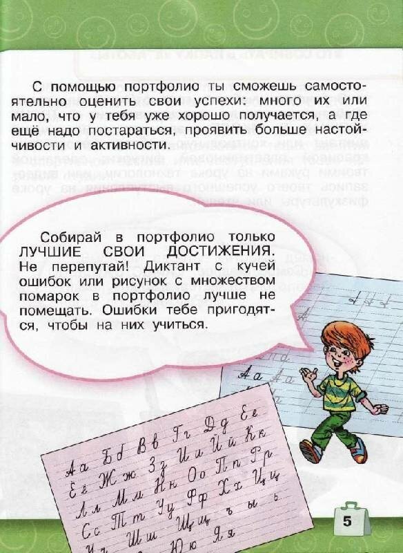 честно говоря,нас вынудили купить эту книгу.учительница настояла.так вот,как мама первоклашки, я могу сказать,что это портфолио-очень сложная вещь.первоклашке не понять что это и к чему...из половины "заданий" в этой книжке-не понятно мне.я вообще не могу понять,зачем это вообще надо. книга совершенно бесполезная!!!!!!! поверте,у первоклашек итак забот хватает...а тут еще сидеть и заполнять это портфолио......одним словом-для первоклашек такая книжка совершенно не подходит.