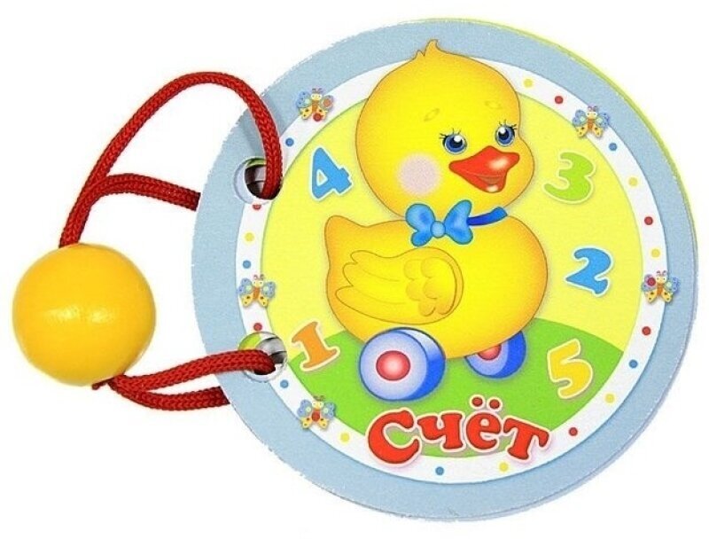 Книжка очень удобная и привлекательная для ребенка за Счет крепления на шнурке плюс еще шарик как игрушка. Плотный картон можно даже иногда погрызть. Удобно в дороге - и книжка, и развивалка, и игрушка. Но небольшой минус я считаю в том, что картинки не очень выразительные, с большим количеством деталей, особенно это выливается в неразборчивую пестротню когда уже цифры 8-9-10.