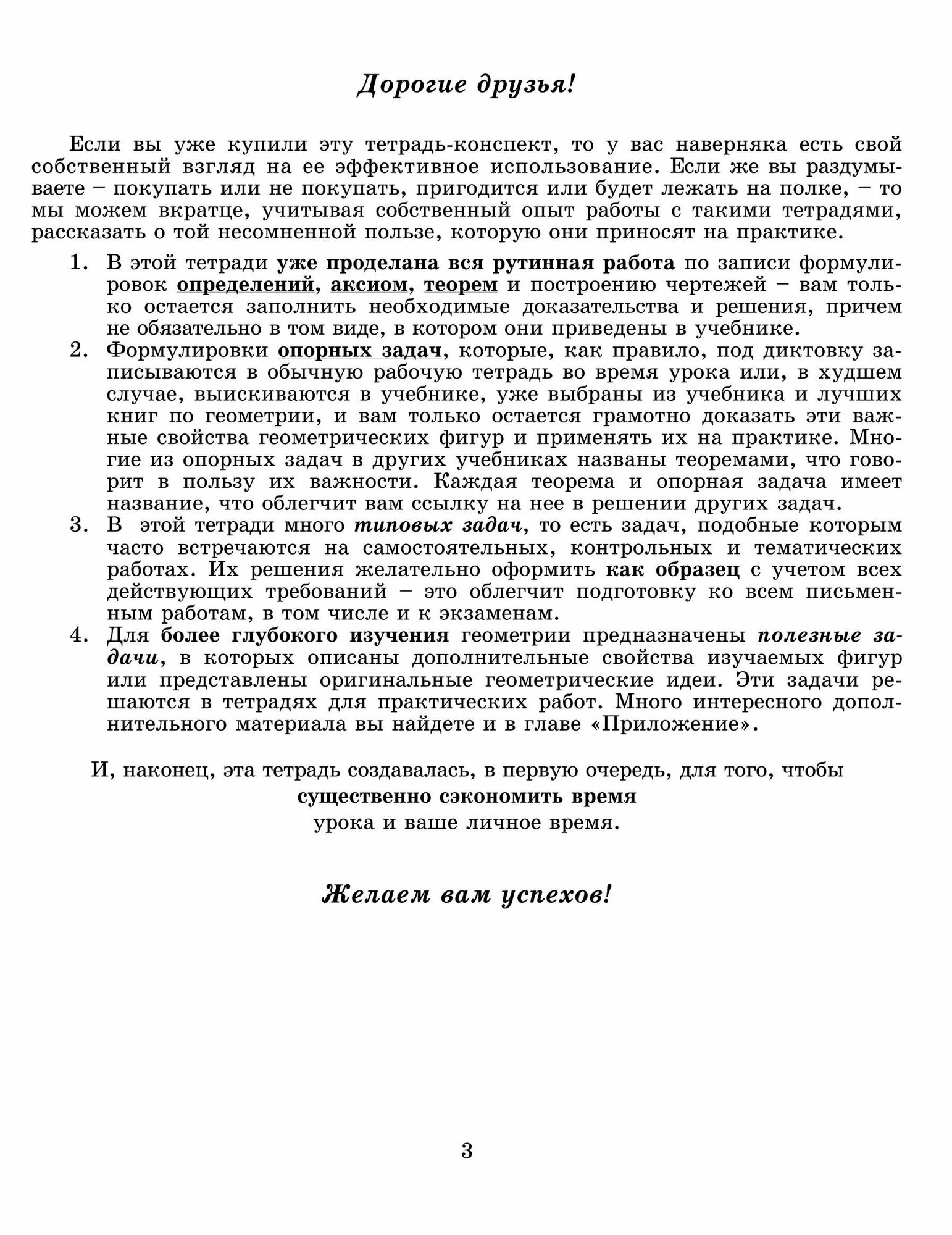 Тетрадь-конспект содержит все основные теоретические сведения - определения, аксиомы, теоремы и следствия из них - курса геометрии 7 класса (по учебнику Л.С. Атанасяна и др.). Опорные задачи содержат важные свойства геометрических фигур, не выраженные в теоремах. Типовые задачи описывают простейшие и более сложные геометрические ситуации, наиболее часто встречающиеся в тематических проверочных работах. Полезные задачи описывают дополнительные свойства изучаемых геометрических фигур. Ко всему материалу приведены чертежи, после теорем и задач оставлено место для самостоятельного заполнения учащимися. К отдельным теоремам и задачам приведены доказательства, решения или указания к решению.