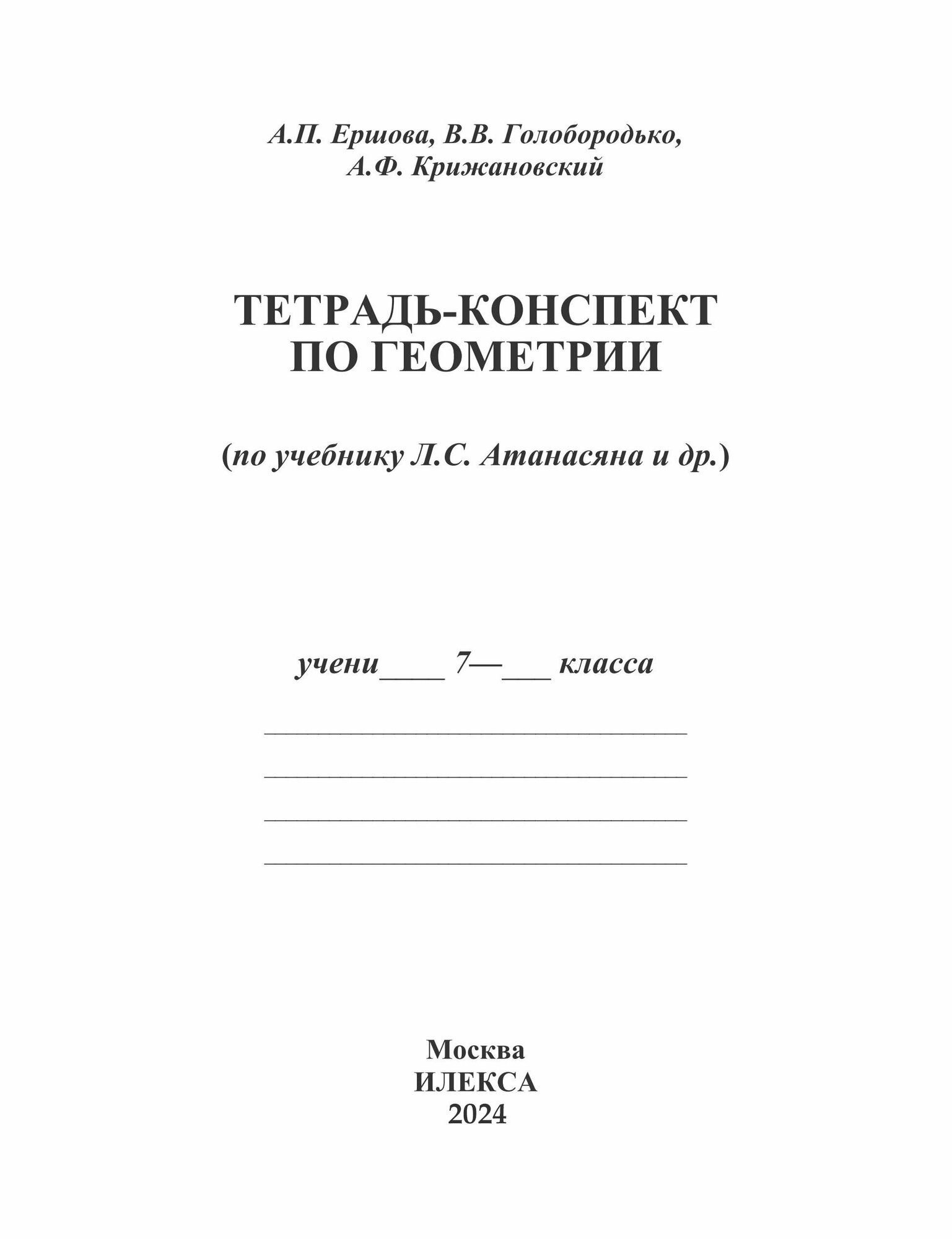 Тетрадь-конспект по геометрии для 7 класса. По учебнику Л. С. Атанасяна и др. (Ершова Алла Петровна, Голобородько Вадим Владимирович, Крижановский Александр Феликсович); Илекса, 2024