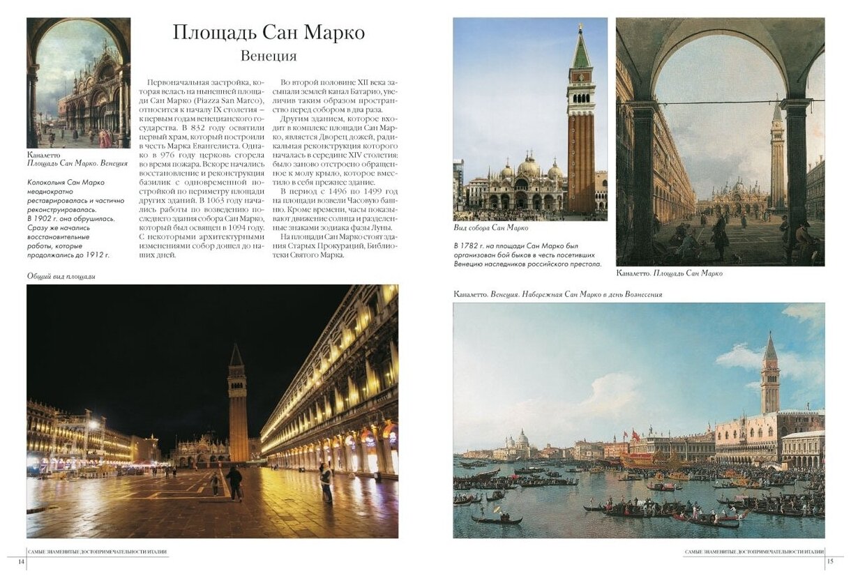 Замечательная серия и эта книга,конечно,тоже.Великолепные виды Италии,интересные описания и очень хорошее полиграфическое исполнение книги очень радуют.Один разворот в книге посвящен одной достопримечательности.Книга формата почти А4,в твердой серийной обложка,внутри мелованная бумага.Прилагаю страницы из книги.