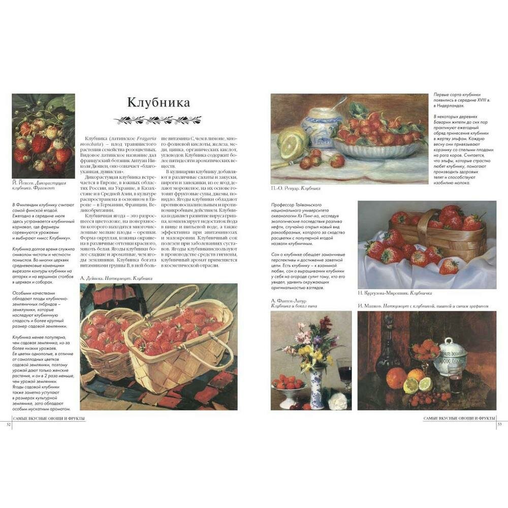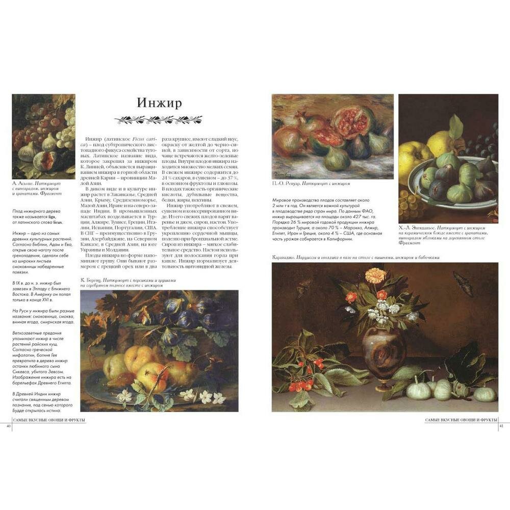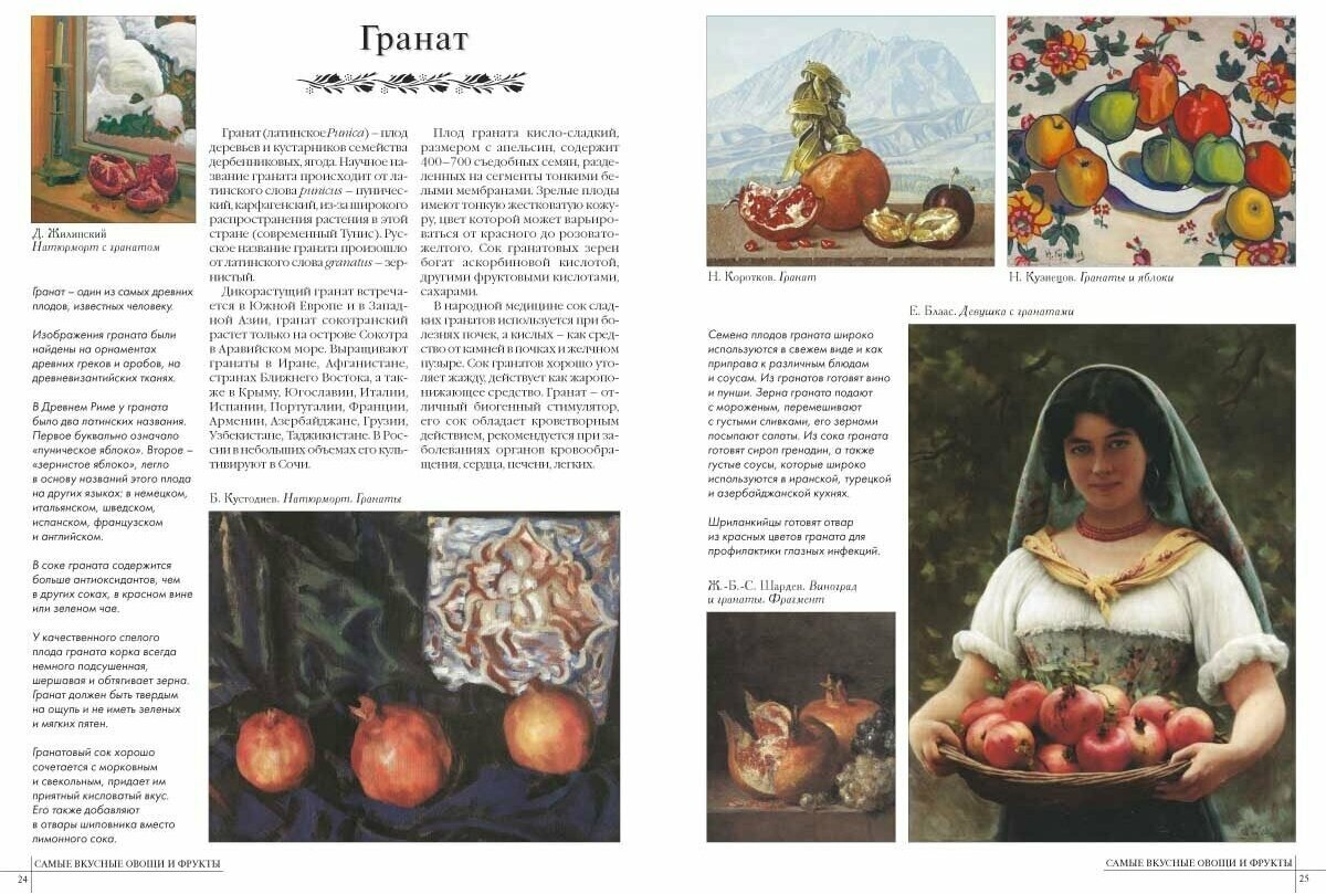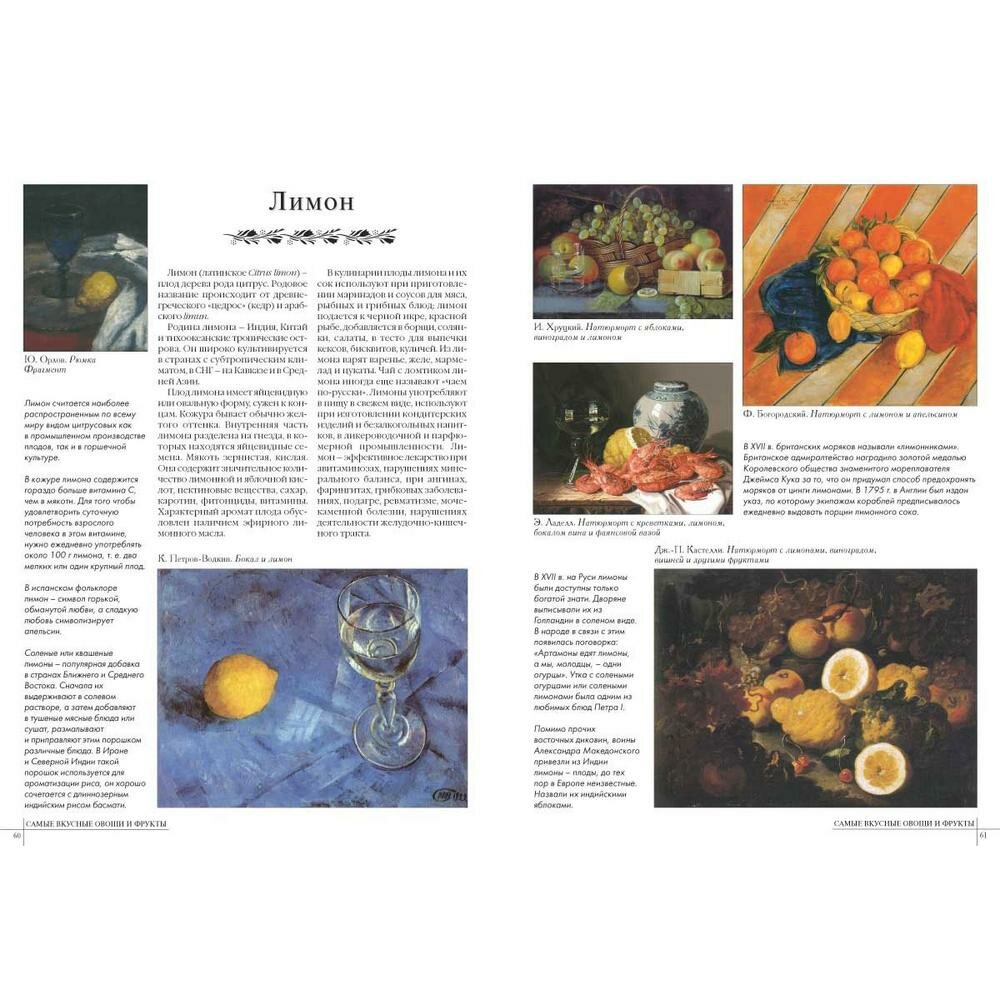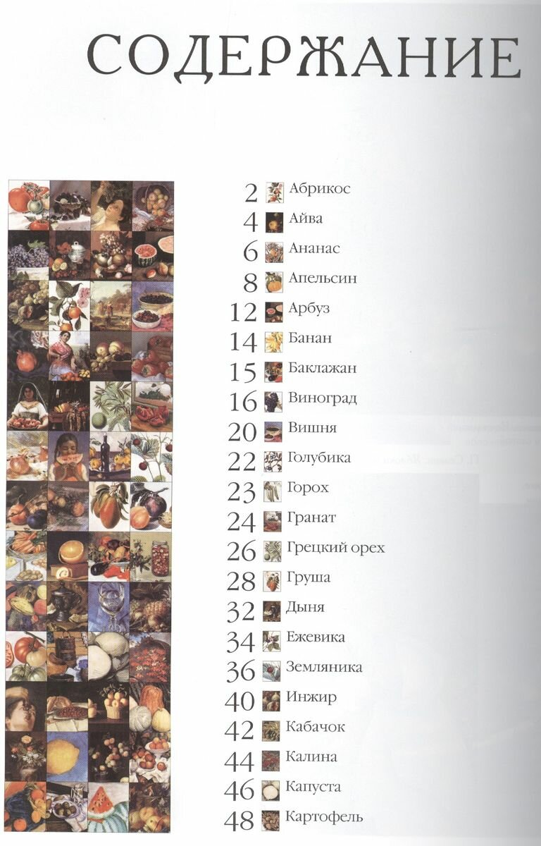Очень соблазнительная книга.Даны описания фруктов и и овощей,их история,происхождение и масса других интереснейших вещей.Ну и конечно,в духе "Белого города" книга содержит огромное количество репродукций картин на которых изображены фрукты и овощи.Издана книга очень хорошо,формат немного меньше А4,твердая обложка,внутри хорошая бумага - офсет.Посмотрите страницы из книги.