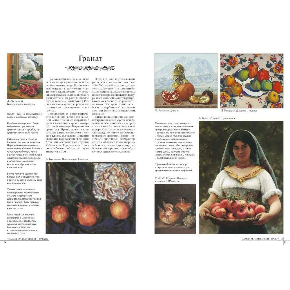 Именно про овощи и фрукты отдельно пишут нечасто. А в таком исполнении - и того реже. Потрясающие репродукции: натюрморты, детали которых можно рассматривать и рассматривать, портреты людей с разными овощами и фруктами. Представлены известные картины, например, "Девочка с персиками".