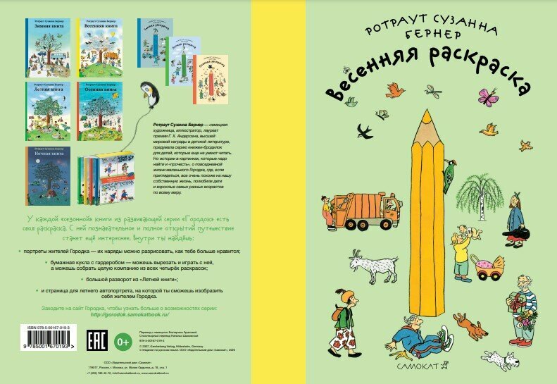 Издательство "Самокат" дополняет серию книжек-картинок Ротраут Сузанны Бернер про Городок выпуском раскрасок.
