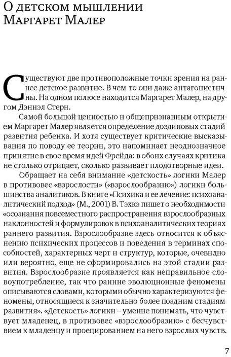 Сразу скажу, что я не специалист в области психологии, перед этой книгой читала литературу на более доступном языке, поэтому в этой книге смогла разобраться. Книга написана для специалистов - это точно. Для того чтобы понять родителю, что же важно для ребенка в этот возрастной период, книга очень хорошо расскажет. Перечитываю главы по мере роста ребенка. Благодаря книге понимаю что происходит с моим малышом и пытаюсь ему помочь (иногда просто не мешать), а так же обратила внимание на себя и свое поведение и состояние. Книга даёт возможность установить взаимосвязи состояния поведения родителя и ребенка. Рекомендую любознательным родителям.