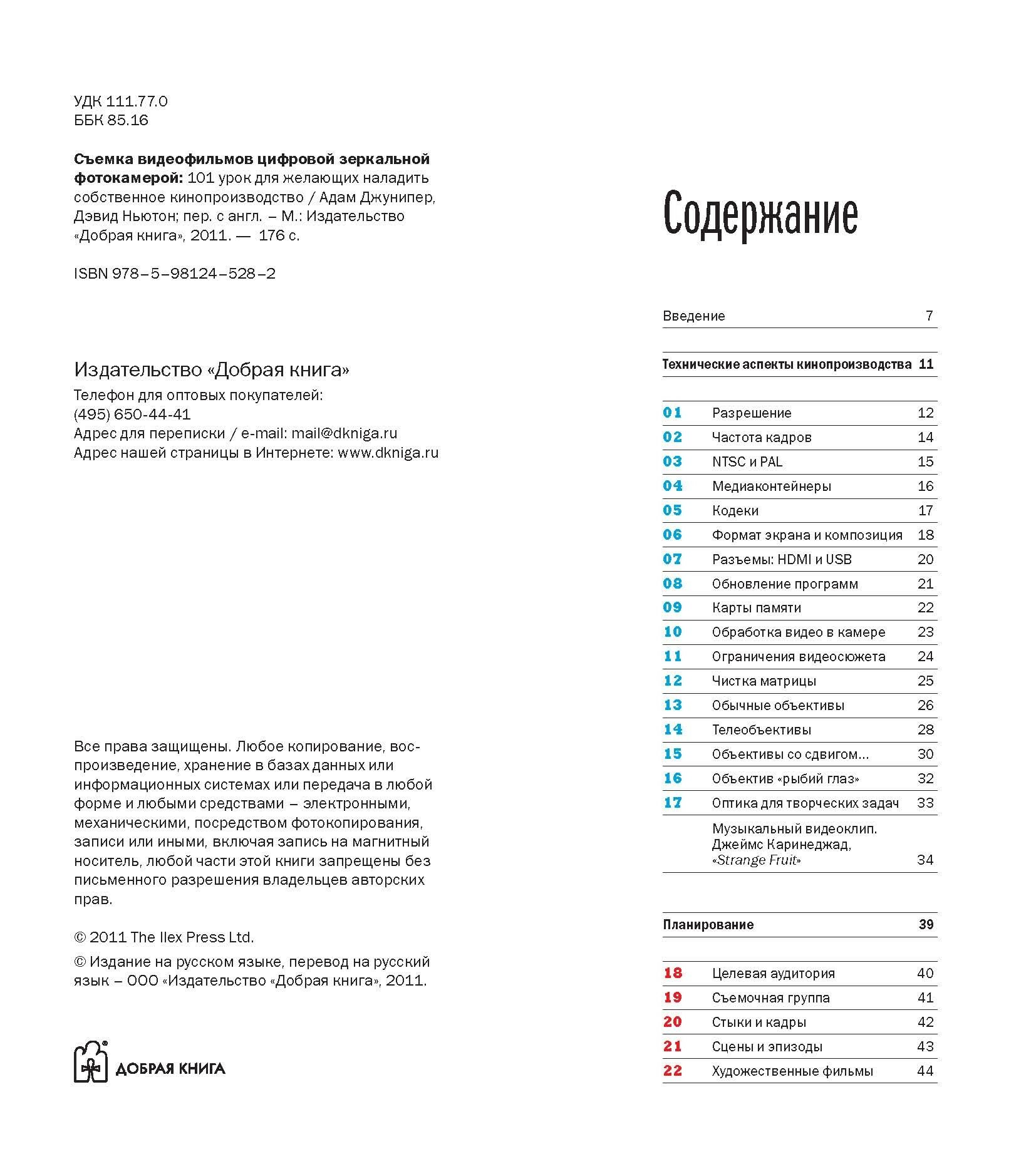 Съемка видеофильмов цифровой зеркальной фотокамерой. 101 урок для желающих наладить собственное кино (Джунипер Адам, Ньютон Дэвид); Добрая книга, 2011