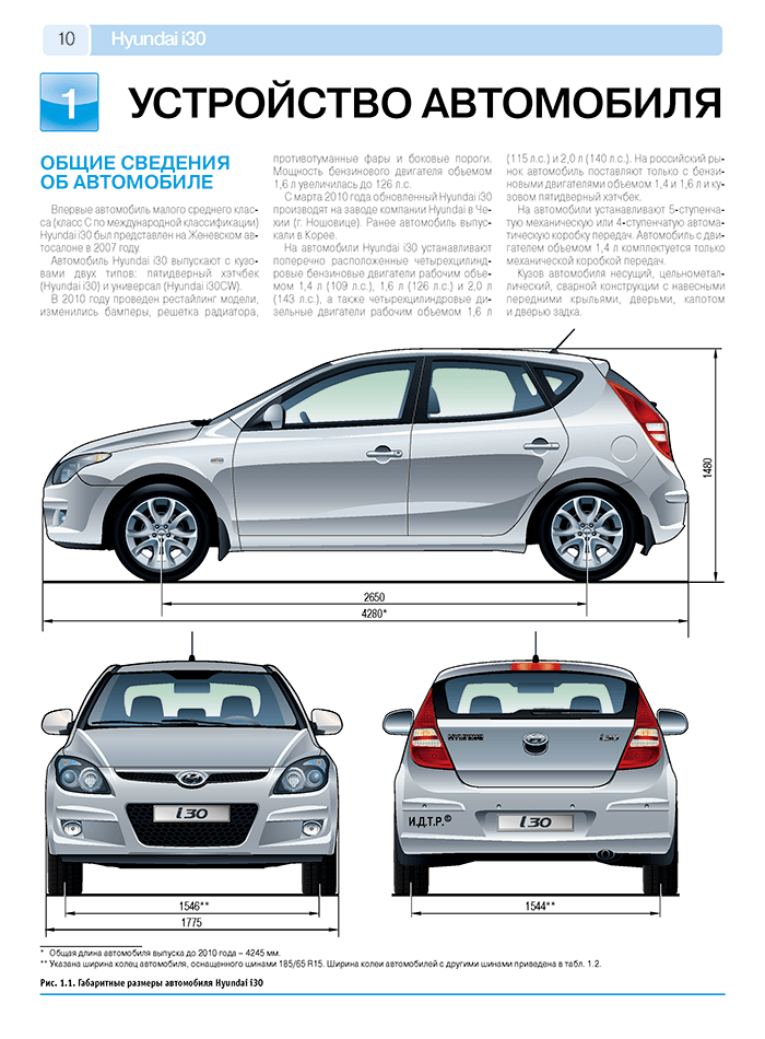 Подробное информационно-справочное со множеством цветных иллюстраций издание Руководство по ремонту Hyundai i30, а также руководство по эксплуатации и техническому обслуживанию, устройство Hyundai i30 с 2007 г. выпуска, а также рестайлинговой модели 2010 г. выпуска, оборудованных бензиновыми двигателями R4, 16V рабочим объемом 1,4 (109 л.с.) и 1,6 л. (126 л.с.).