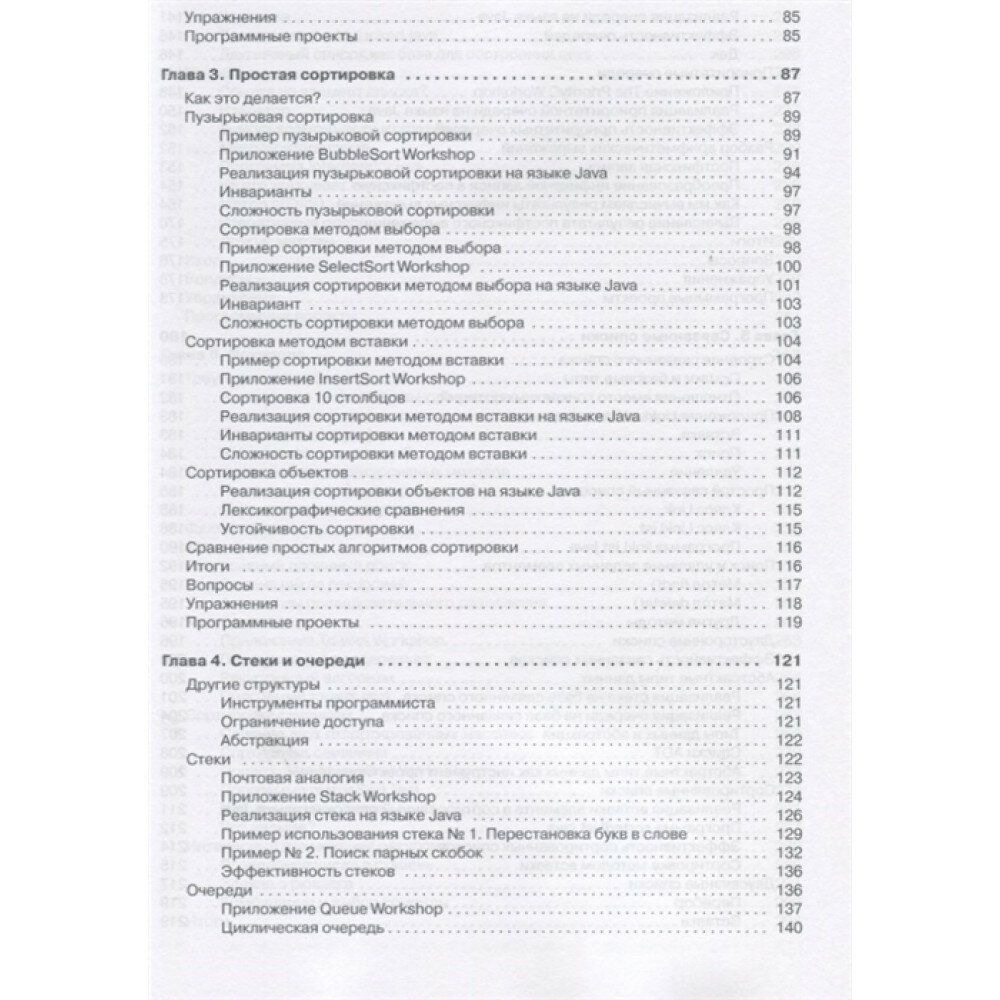 В данный момент изучаю язык Java, поэтому искала книгу об алгоритмах с примерами именно на нём. Помимо этого, книга еще и написана легко и интересно, а от примеров задач не хочется сладко вздремнуть. Даётся как теория, так и практика, есть вопросы и задания в конце каждой главы для закрепления материала. Ответы на вопросы приведены в приложении, там же есть список рекомендуемой литературы, разбитый на подразделы. Книга довольно крупного формата, хорошее качество бумаги и печати, много иллюстраций и таблиц.