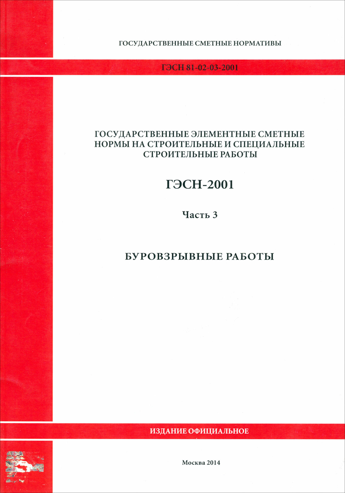 ГЭСН 81-02-03-2001. Часть 3. Буровзрывные работы; Стройинформиздат, 2014