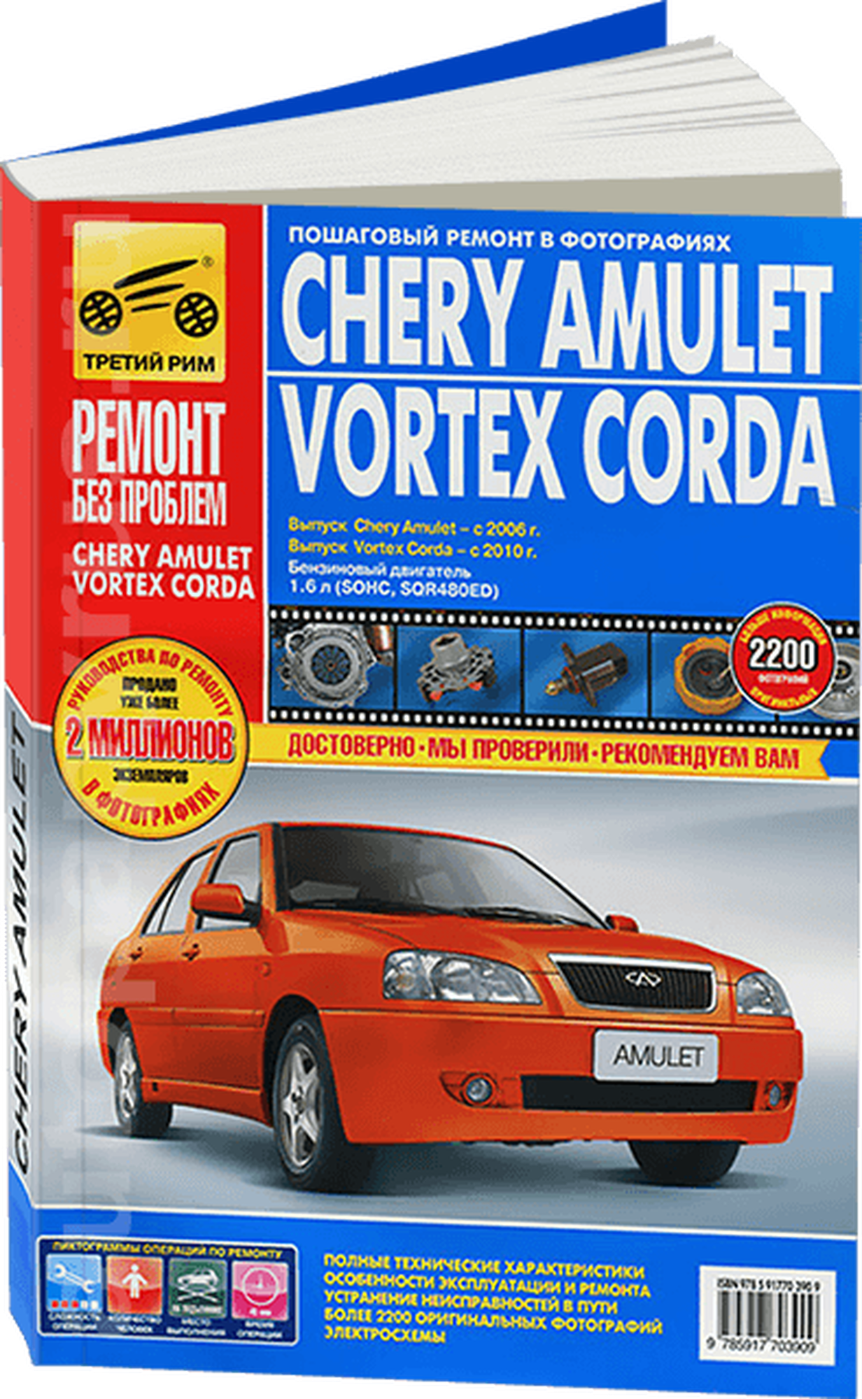 Предлагаем вашему вниманию руководство по ремонту и эксплуатации автомобиля Chery Amulet/Vortex Corda с бензиновым двигателем 1,6 л.