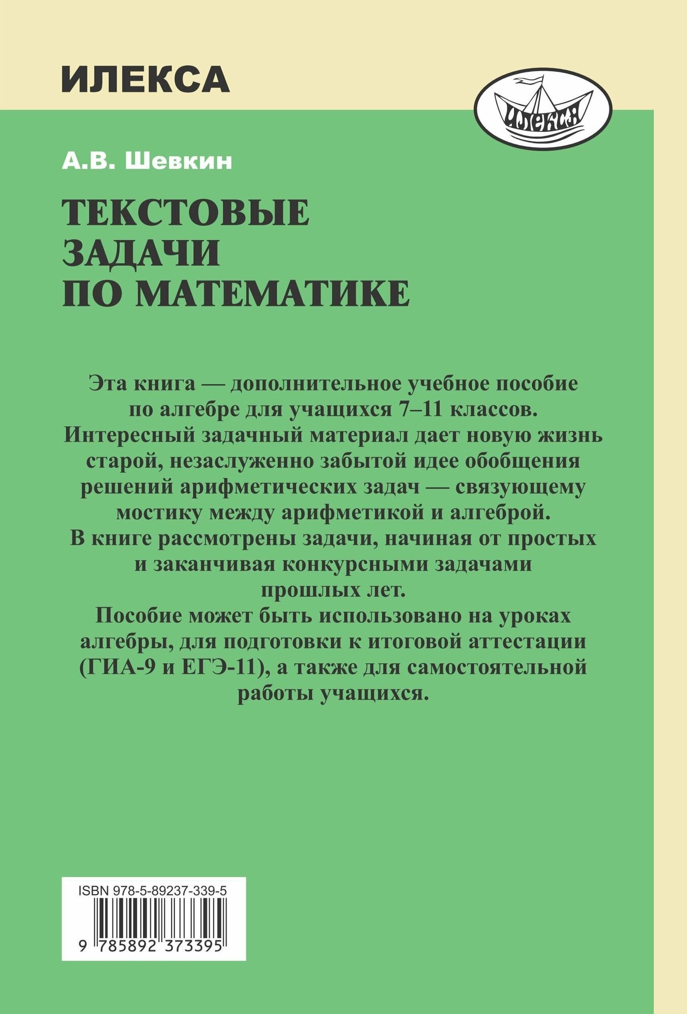Текстовые задачи по математике. 7-11 классы (Шевкин Александр Владимирович); Илекса, 2016