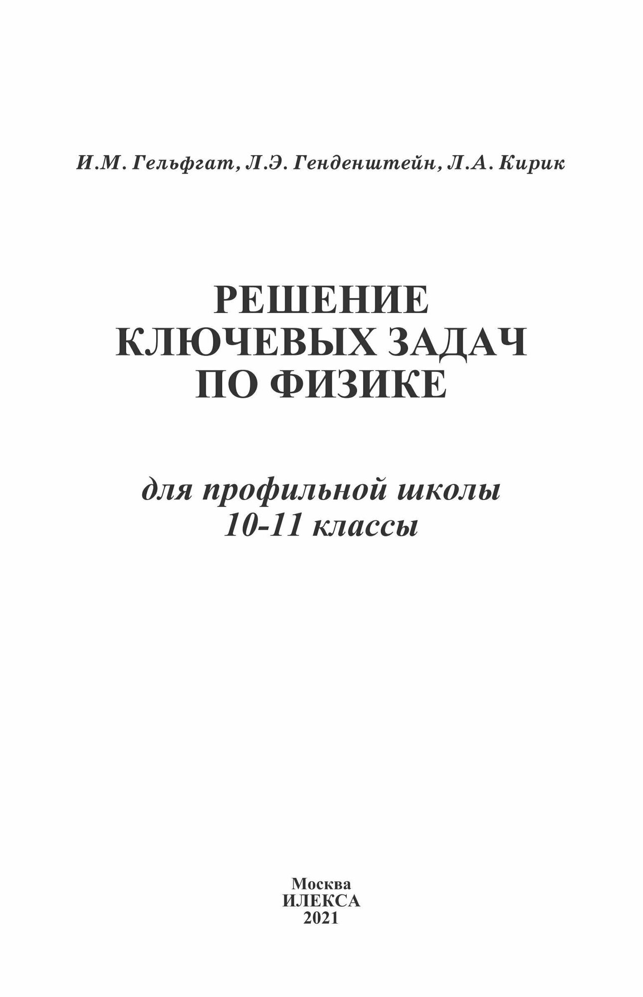 Решения ключевых задач по физике для профильной школы. 10-11 классы (Генденштейн Лев Элевич, Кирик Леонид Анатольевич, Гельфгат Илья Маркович); Илекса, 2018