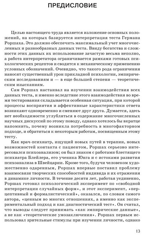 Тест чернильных пятен Роршаха - один из самых известных и широко применяемых психодиагностических инструментов для изучения личности в ее нормальных и патологических проявлениях. Практическое использование этого теста невозможно без глубокой теоретической подготовки и овладения системой описания и кодирования ответов испытуемых. Предлагаемое российскому читателю руководство к тесту Роршаха написано почетным профессором Парижского университета имени Рене Декарта, доктором Ниной Константиновной Рауш де Траубенберг. Эта книга выдержала 8 изданий во Франции, была переведена на несколько языков и в течение уже более 30 лет служит незаменимым пособием для многих европейских психологов. Руководство охватывает все показатели теста и снабжено сводными таблицами систем шифровки ответов по тесту, составленными на основе разных источников. Настоящее издание будет полезно клиническим психологам, психиатрам, научным работникам, а также студентам и аспирантам, изучающим проективные психодиагностические методы.