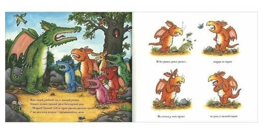 Купили три последних книжки Дж. Дональдсон. Очень милая сказка с прекрасными иллюстрациями. Дочка просит постоянно прочитать ее. Хоть есть пара моментов, на которых я " спотыкаюсь", в целом все отлично. Папе нашему тоже очень нравятся книги этой дамы, купили в большей степени для него, что- то обычное заставить его читать ребенку сложно)