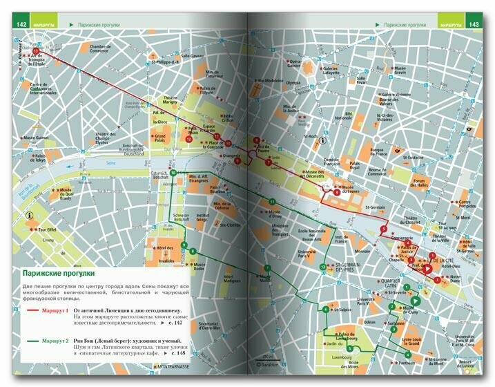 Очень понравилось, что помимо общей информации о музеях, важнейших достопримечательностях (характерной для многих толстых путеводителей) даются советы, что посмотреть в первую очередь, где отведать блюда настоящей французской кухни, попробовать мороженое и даже покататься на роликах. Есть еще небольшой раздел «Путешествуем с детьми» (указаны даже детские поликлиники, что немаловажно для родителей, отправляющихся в Париж с любимым чадом).