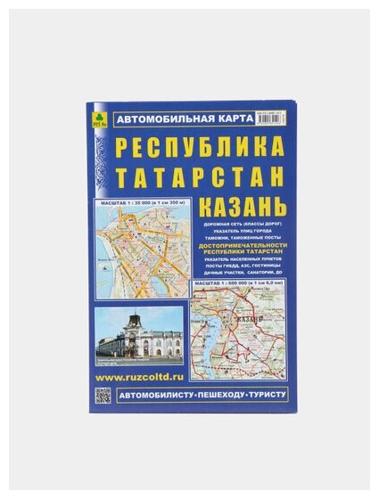Масштаб города 1:35000, масштаб Республики 1:500 000, двусторонняя, складная, с указателем улиц города и населенных пунктов Республики Татарстан + административная схема Республики и историческая справка.