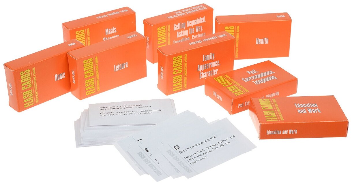 Идея тематических карточек - замечательная! Карточки со словосочетаниями и идиомами каждой темы находятся в отдельной небольшой картонной коробочке. Это очень удобно - можно взять одну коробочку с собой, например, на работу и в свободное время почитать, поучить полезные выражения! Все выражения проиллюстрированы примерами. Карточки могут пригодиться как преподавателям английского языка, так и тем, кто его учит .