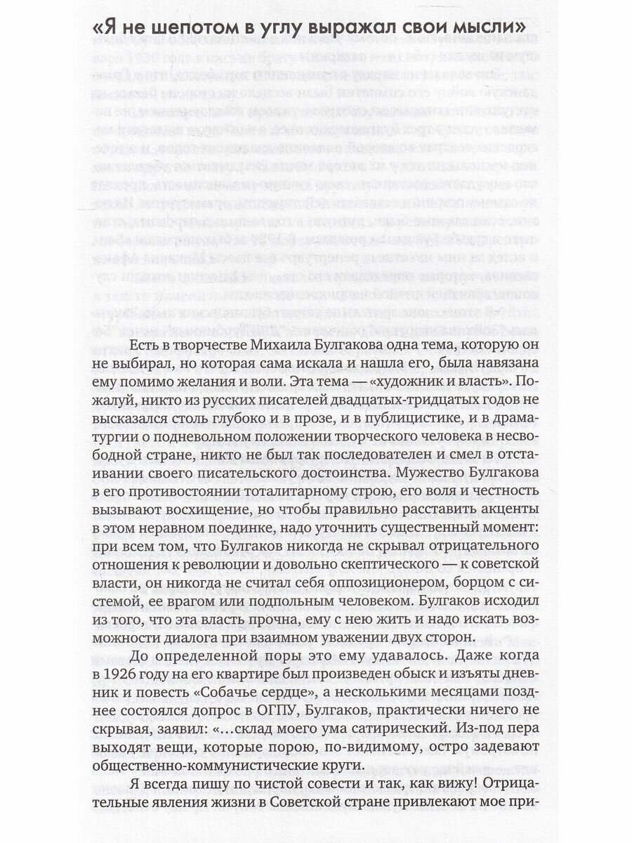 Книга посвящена теме взаимоотношений художника и власти. Власть всегда стремилась подчинить творчество художника своим интересам, поставить его себе на службу, а каждый истинный художник (будь то Мольер, Пушкин или сам Булгаков) боролся за свою независимость и жестоко расплачивался за это - в том числе собственной жизнью.