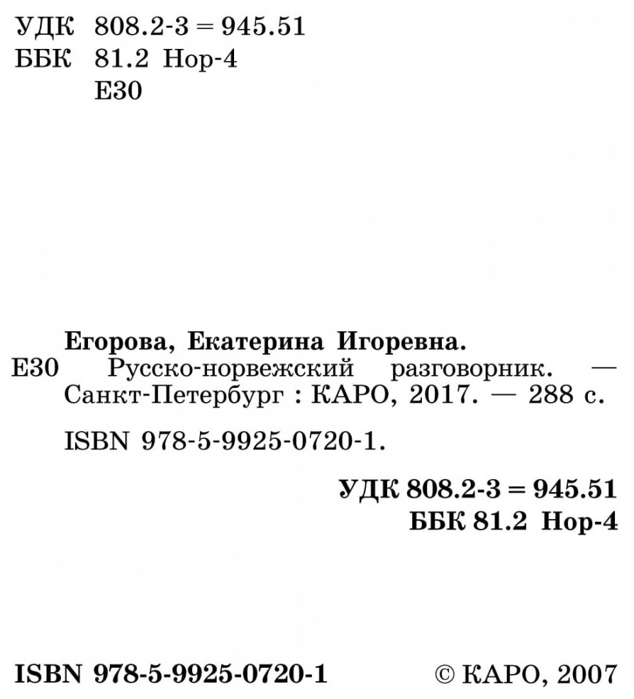 Русско-норвежский разговорник (Е. И. Егорова); КАРО, 2017