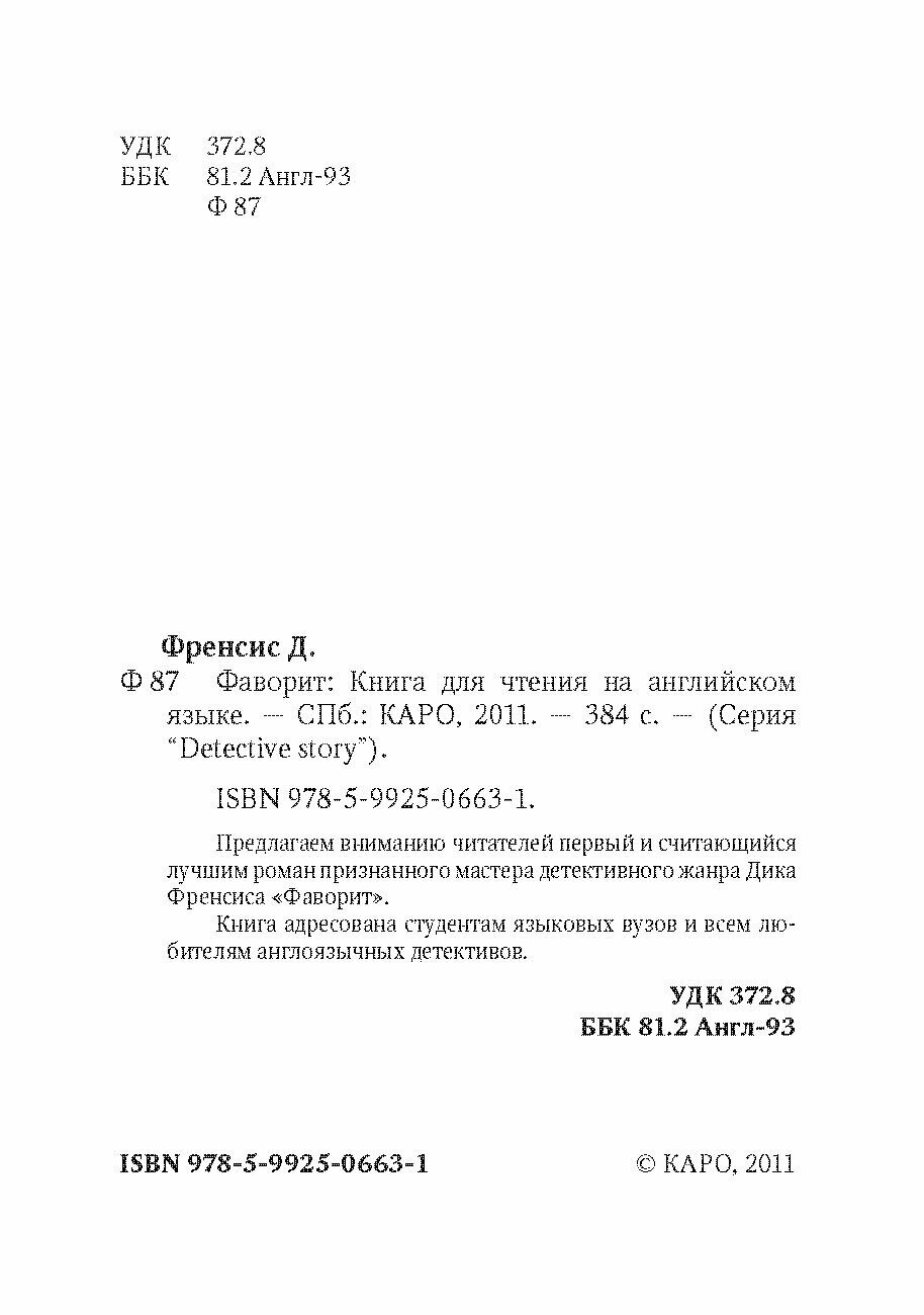 Фаворит: Книга для чтения на английском языке. (Френсис Д.); Каро, 2011