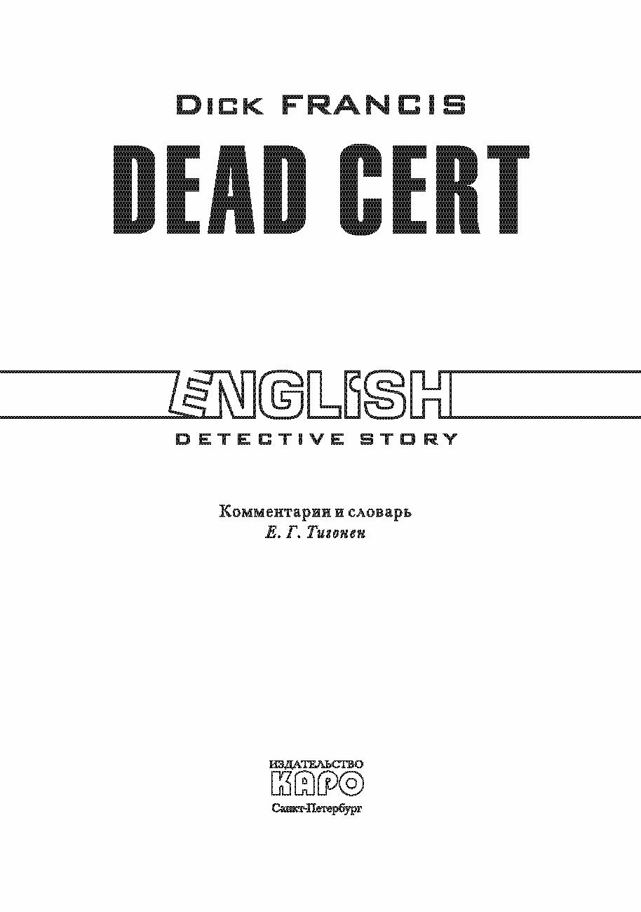 Только что закончила читать роман Френсиса \"Dead cert \". Это моё первое знакомство с произведениями этого автора и такой тематикой, как скачки (а ещё и с препятствиями). Не могу сказать, что сюжет показался сильно увлекательным, особенно по началу. По моему мнению, если описание снаряжения лошадей и экипировка жокев, ещё как-то может расширить мой кругозор, то подробное описание правил игры в карты, только для того чтобы акцентировать внимание на неординарных умственных способностях ребенка излишне. Ближе к середине развитие событий сдвинулось и стало более интересно. Грустно, что даже вокруг таких прекрасных животных, как лошади, может происходить много тёмного и алчного. Отрадно, что есть много простых людей, готовых встать на защиту своей семьи, дружбы и чести, несмотря на все опасности и угрозы.