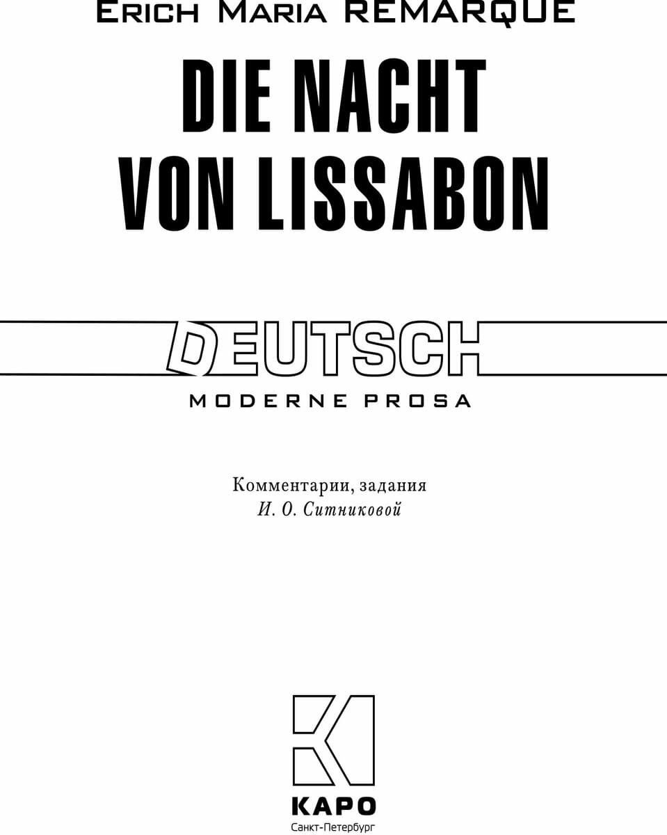 Сервис сравнения цен СкидкаГИД предлагает сравнить цены на товар «Книга: Die Nacht von Lissabon. Ночь в Лиссабоне: Книга для чтения на немецком языке (Erich Maria Remarque); КАРО, 2017»