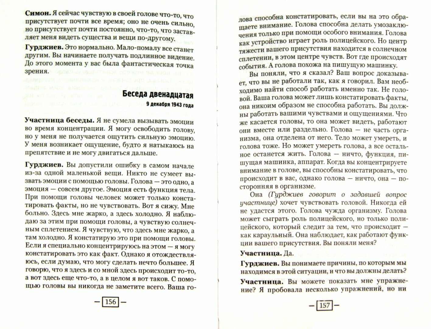 Сборник работ одного из ведущих деятелей оккультной мысли 20 века. Первый текст представляет собой рекламный проспект предпринятой автором попытки, до конца не завершенной, изложить свое учение в серии книг, с описанием обоснования этого проекта. Второй текст, впервые изданный на русском, представляет собой конспекты бесед автора с учениками в 40-х годах 20 века, когда авторская концепция была достаточно сформирована. Темы бесед посвящены процессу самопознания, работы над собой, описанию и использованию в работе различных психических состояний, религиозным вопросам. Помимо Гурджиева, среди участников бесед можно отметить Жанну де Зальцман, книга которой недавно также была издана на русском. Рекомендуется изучать вместе с другими книгами автора, а также работами П.Д. Успенского.