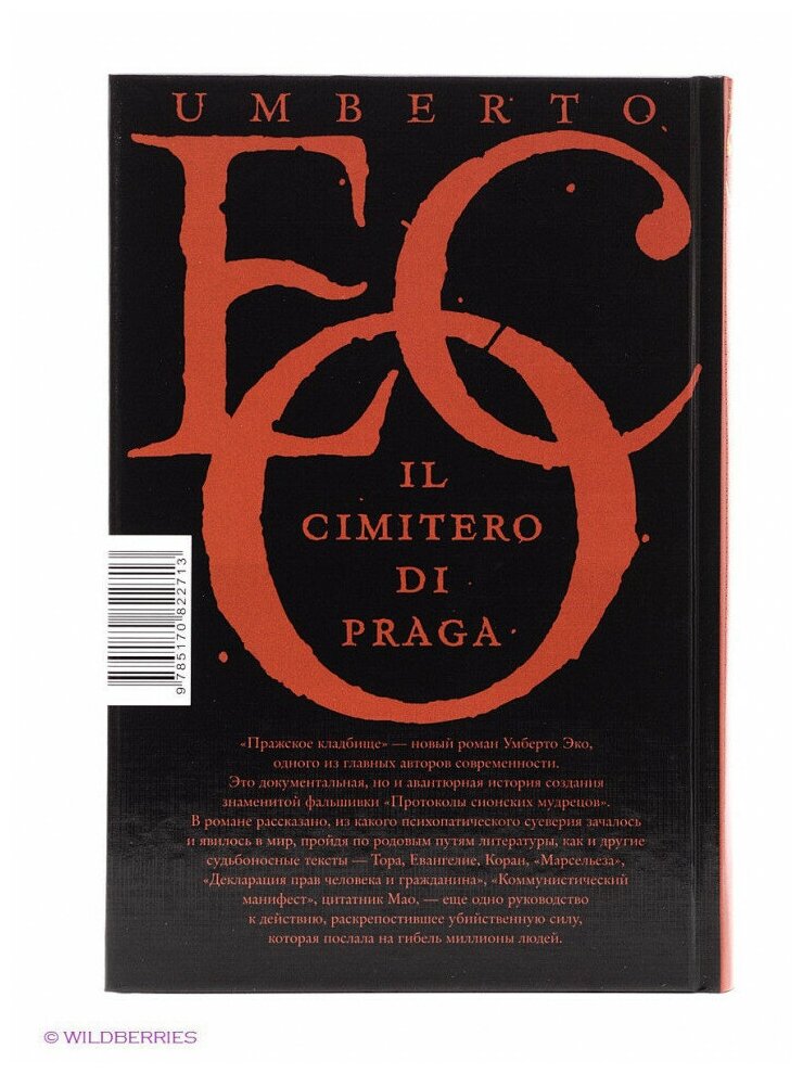 Действие романа "Пражское кладбище" разворачивается почти целиком во Франции, но последствия этой интриги трагически поразят потом целый мир. В центре событий довольно скоро окажется Россия, где в 1905 году была впервые напечатана знаменитая литературная подделка "Протоколы сионских мудрецов". В романе документально рассказано, чьими усилиями эта подделка была создана. Главный герой очень гадок, а все, что происходит с ним, и ужасно, и интересно. Автор, строя сюжет в духе Александра Дюма, протаскивает затаившего дыхание читателя по зловонным парижским клоакам и по бандитским притонам, вербует героя в гарибальдийское войско, заставляет его шпионить на все разведки и контрразведки мира, в том числе и на русскую охранку, укрощать истеричек из клиники доктора Шарко, распивать пиво с Зигмундом Фрейдом, форсить бок о бок со Свободой на баррикадах и даже участвовать в сатанинской мессе. Одновременно, как всегда, Умберто Эко выдает читателю в оболочке приключенческого романа огромный заряд знаний и идей.