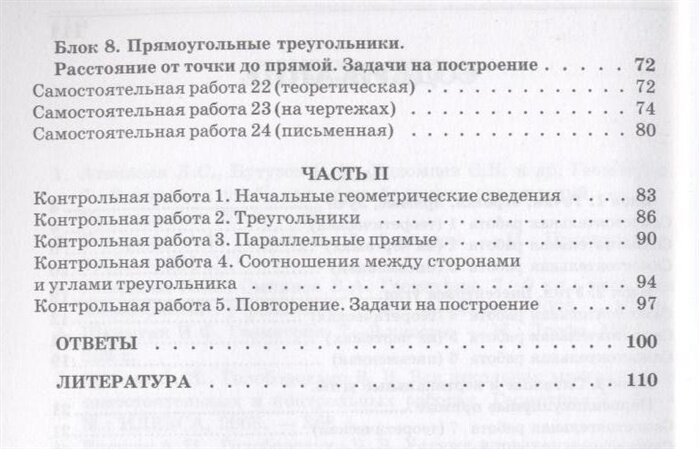 Самостоятельные работы разделены на 8 блоков, соответствующих основным этапам изучения геометрии в 7 классе. Каждый блок состоит из трех видов работ, реализующих различные дидактические цели,- работы по проверке теории, работы на готовых чертежах и письменные работы. В сборник также вошли 5 контрольных работ. Все работы состоят из 4 вариантов двух уровней сложности и предназначены для организации дифференцированного обучения и контроля в общеобразовательных и профильных школах.
