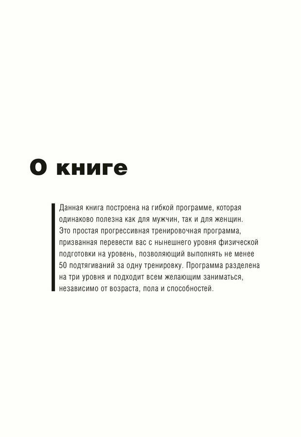 Предлагаются проверенные на практике и детально разработанные планы тренировок для людей с любым уровнем подготовки, для новичков, желающих освоить новый вид физических упражнений, до профессионалов фитнеса, подыскивающих самые эффективные варианты силового тренинга. Для наглядности все упражнения сопровождаются фотографиями.