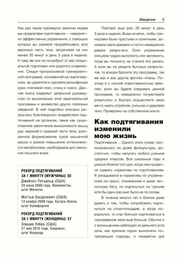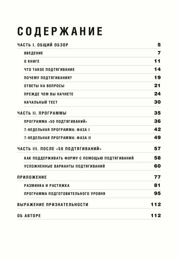 Также в 50 подтягиваний через 7 недель особый акцент сделан на обязательном выполнении разминки ДО и заминки ( растяжки ) ПОСЛЕ тренировки. Не во всех пособиях к ним относятся столь серьезно. Итог ? Занятия без предварительного разогрева и "охлаждения" в конце могут привести к травмам.