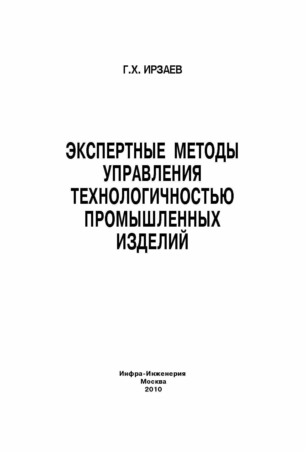 Экспертные методы управления технологичностью промышленных изделий (Г. Х. Ирзаев); Инфра-Инженерия, 2010