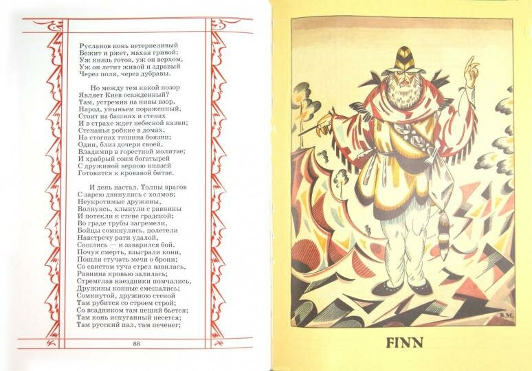 Нужно было прислушаться к предыдущему отзыву и отказаться от покупки этой книги. Я же, решив пополнить свою коллекцию данной ЗАМЕЧАТЕЛЬНОЙ серии, конкретно этой книгой разочарована.Наверное, нужно быть поклонником творчества Масютина, чтобы оценить его иллюстрации по достоинству. Он везде идет своим путем. Если в "Золотом петушке" еще можно и простому смертному увидеть"лубочность" изображения, то в "Руслане и Людмиле"- просто портреты главных персонажей да еще и "загранично-онемеченных". Это вместо привычных сказочных картинок. Очень нестандартно. К сожалению, нет под рукой сканера. Но достаточно тех изображений, которые уже выложены.