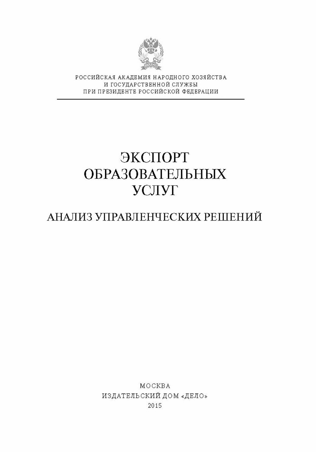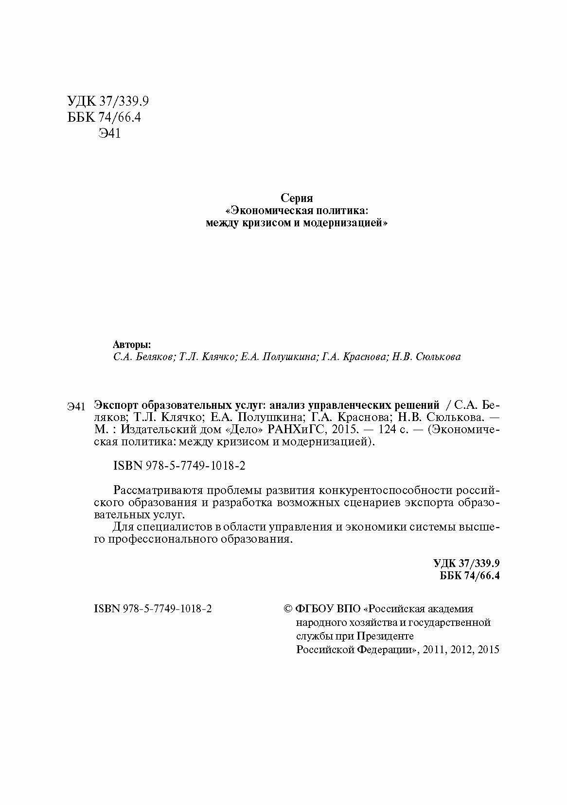 Экспорт образовательных услуг: анализ управленческих решений (Е. А. Полушкина); РАНХиГС, 2015