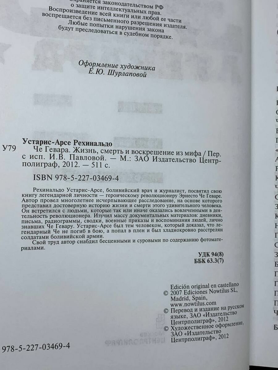 Рехинальдо Устарис-Арсе, боливийский врач и журналист, посвятил свою книгу легендарной личности - героическому революционеру Эрнесто Че Геваре. Автор провел многолетнее исчерпывающее расследование, на основе которого представил достоверную историю жизни и смерти этого удивительного человека. Он встретился с людьми, которые так или иначе оказались вовлеченными в деятельность революционера. Изучил массу документальных материалов: дневники, письма, радиограммы, сводки, военные приказы и воспоминания людей, лично знавших Че Гевару. Устарис-Арсе был тем человеком, который доказал, что легендарный Че не погиб в бою, а попал в плен и был хладнокровно расстрелян солдатами боливийской армии.