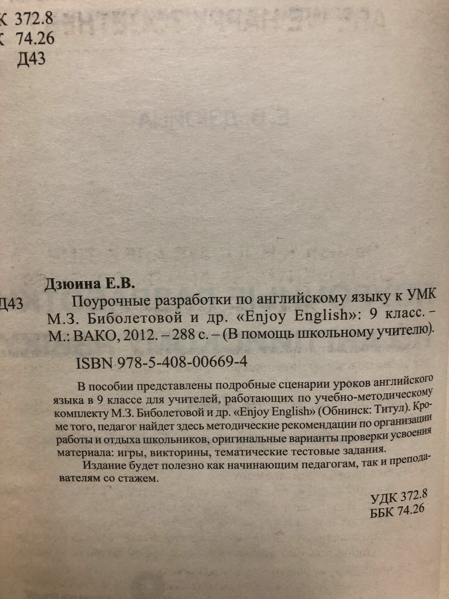 Сервис сравнения цен СкидкаГИД предлагает сравнить цены на товар «Книга: Английский язык. 9 класс. Поурочные разработки к УМК М. З. Биболетовой и др. "Enjoy English" (Дзюина Елена Владимировна); Вако, 2014»