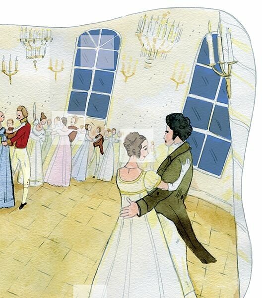 Еще, если у вас девочка она обязательно дорисует всем дамам платья)) Иллюстрации красивые, во многом светлая акварель, которую можно "доработать" фломастерами - карандашами))
