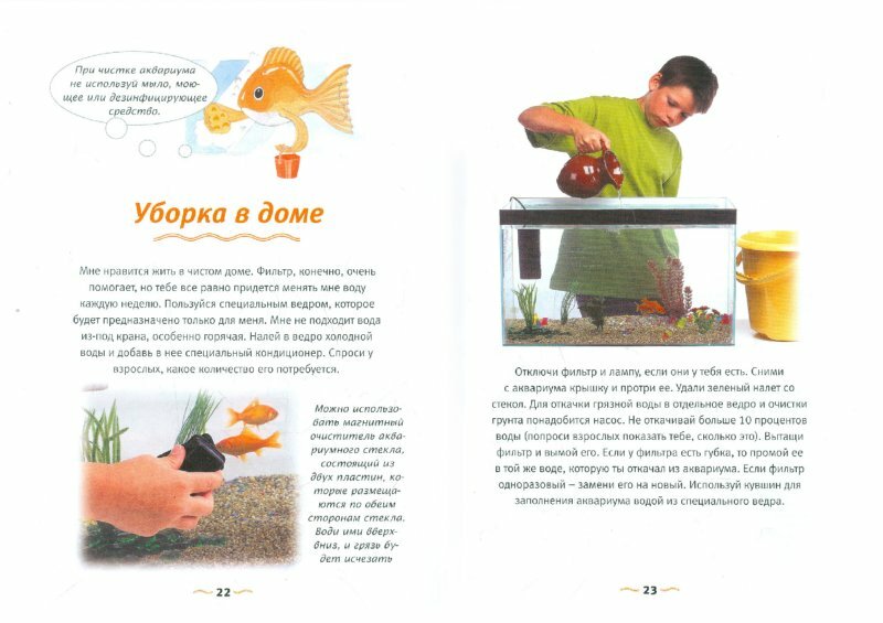 Информация в книге самая важная основная, без технических подробностей. Ребенок с удовольствием прочитал сразу весь текст, не откладывая, настолько было интересно и необходимо. Договорились, что только после теоретической подготовки можно заводить новых друзей-рыбок. Что и свершилось.