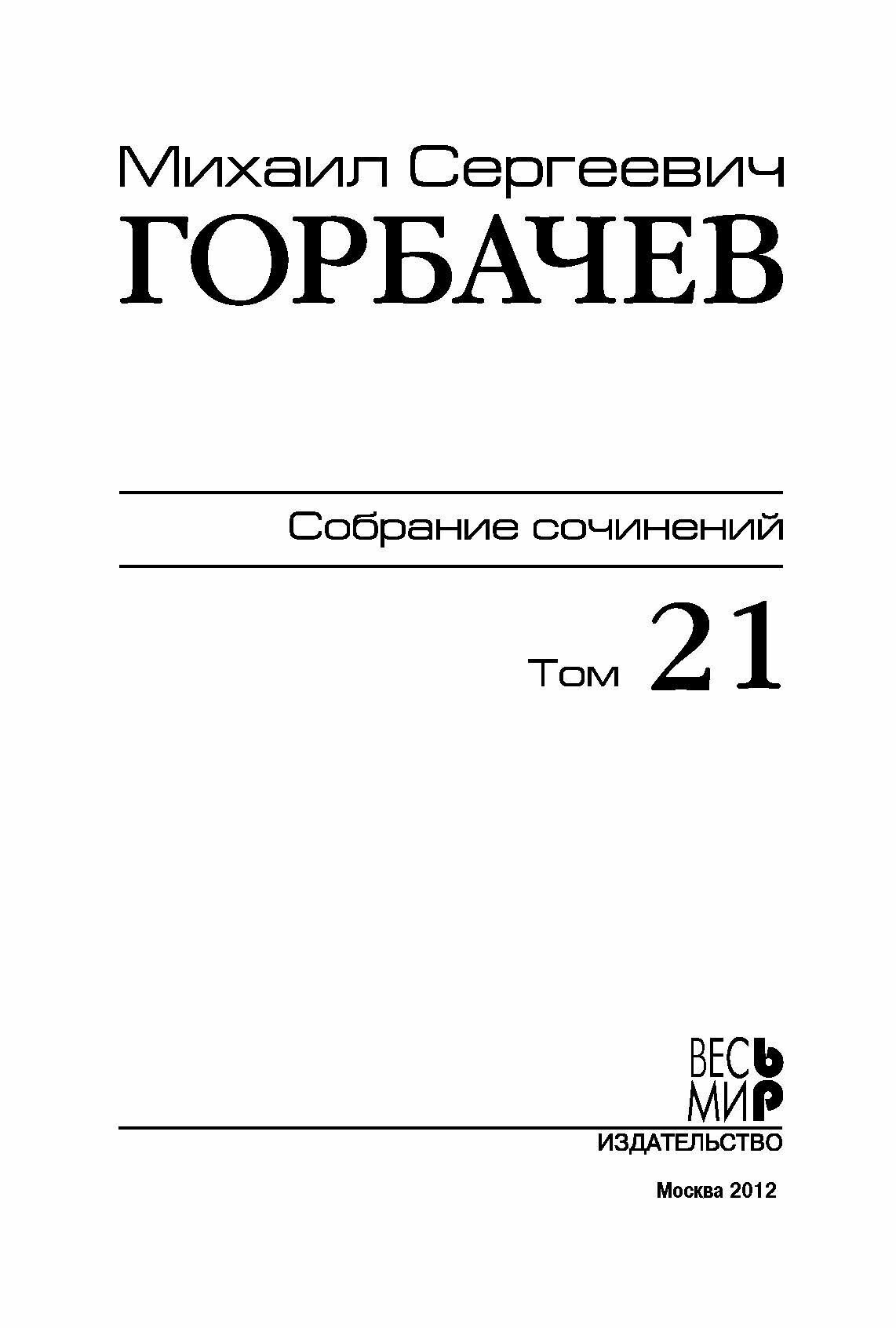 Собрание сочинений. Том 21. Июль-август 1990 (Михаил Сергеевич Горбачев, М. Г. Горбачев); Весь мир, 2012