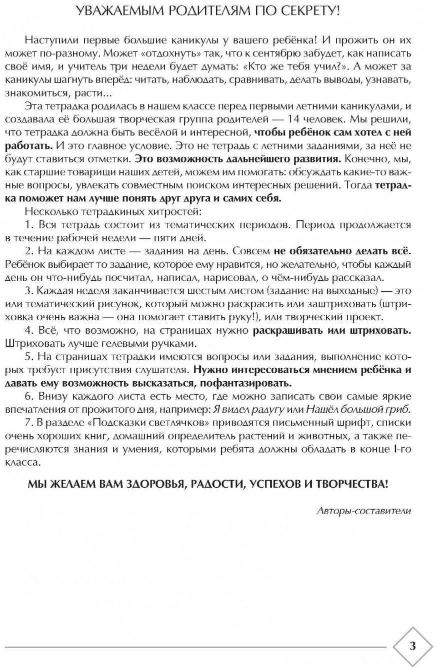 Это не тетрадь с летними заданиями, за неё не будут ставиться оценки. Совсем необязательно делать все задания на каждой странице. Но желательно, чтобы ребёнок каждый день что-нибудь посчитал, написал, нарисовал и о чём-нибудь рассказал.