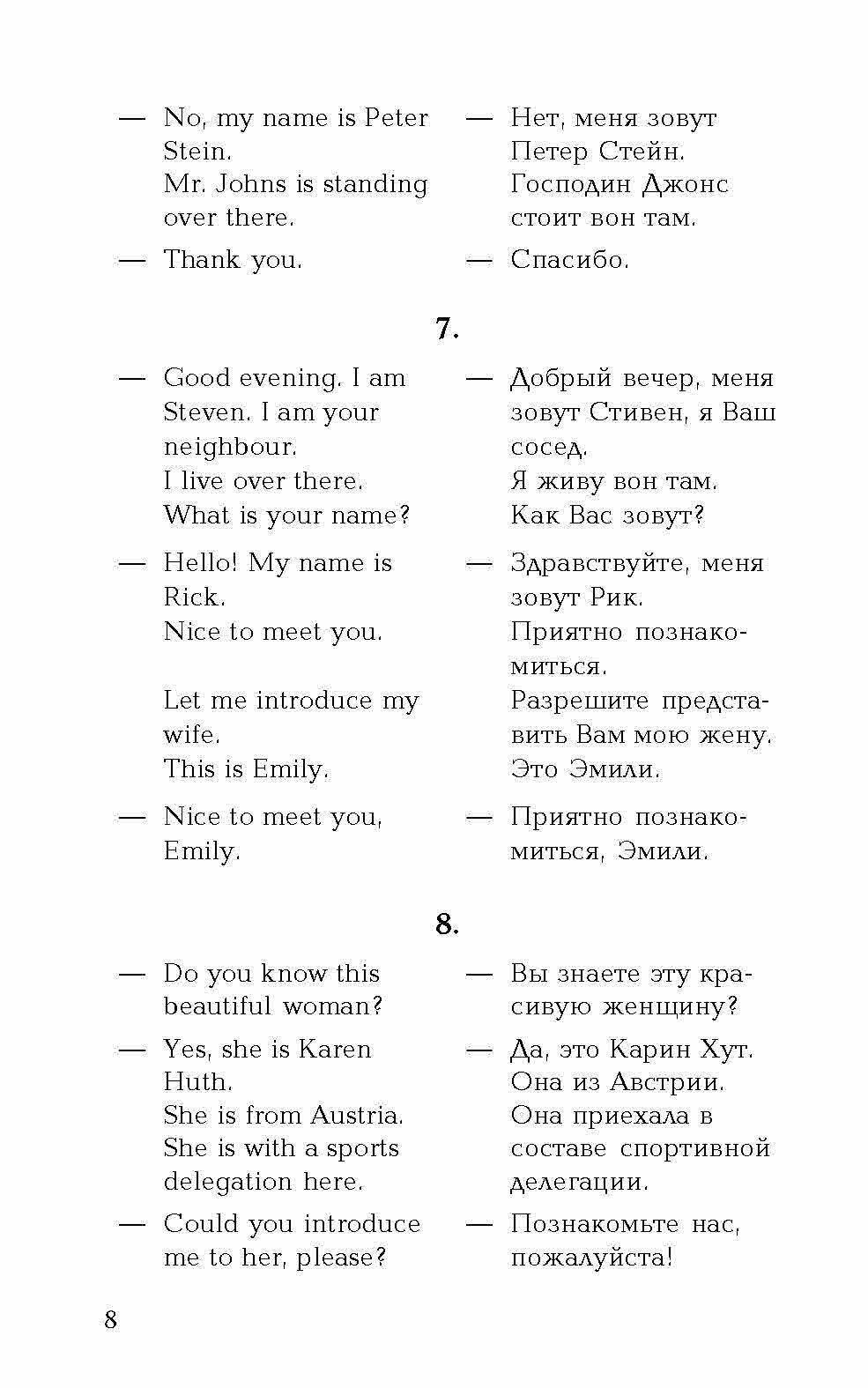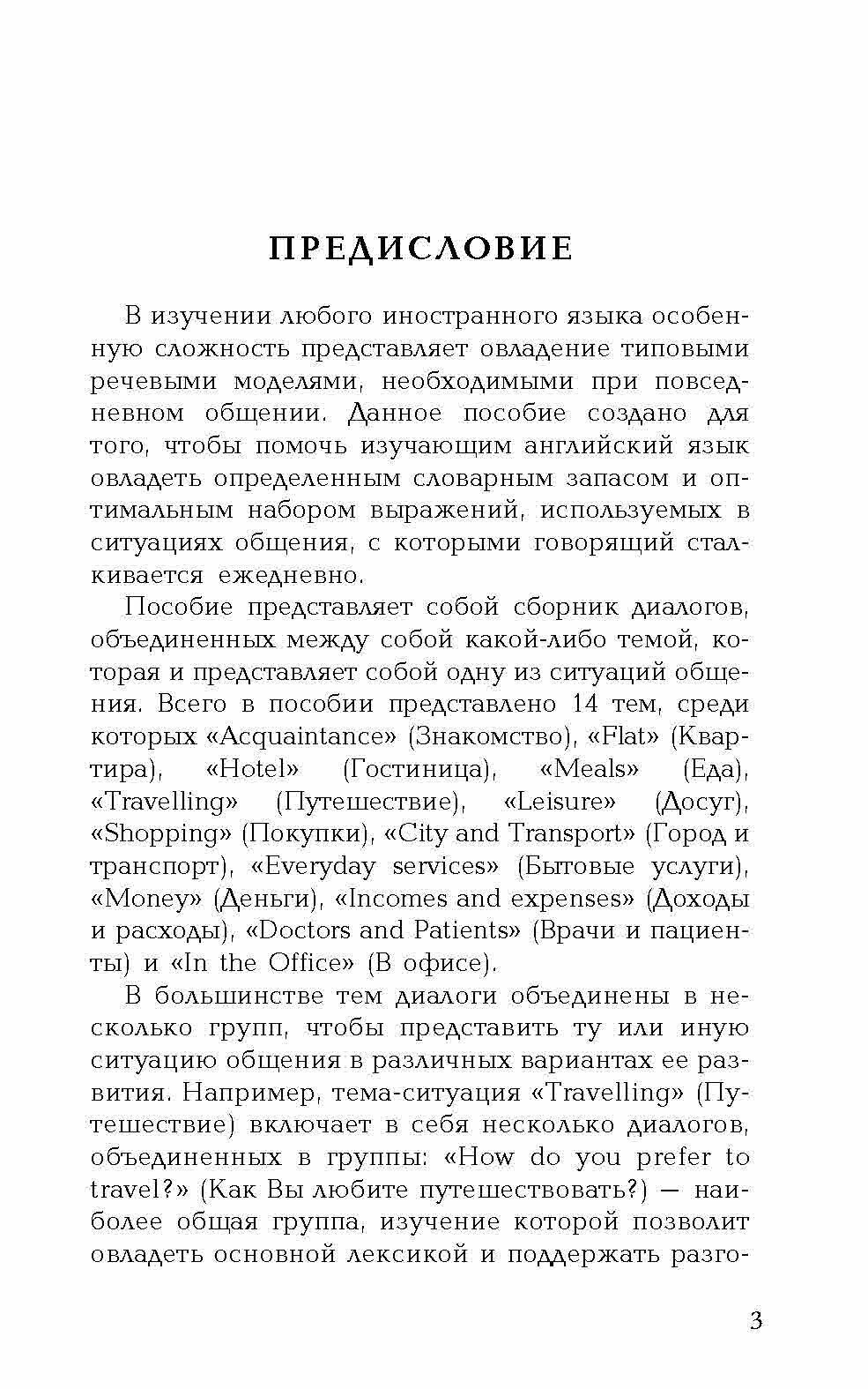 Это пособие предназначено для тех, кто хочет овладеть английской разговорной речью. Оно построено но коммуникативному принципу и знакомит с основными ситуациями повседневного общения как за рубежом, так и при приеме иностранных гостей у себя в стране. Тщательно отобранный и точный в плане выражения современный языковой материал, записанный на компакт-диск, делает диалоги живыми и удобными для непосредственного практического использования.