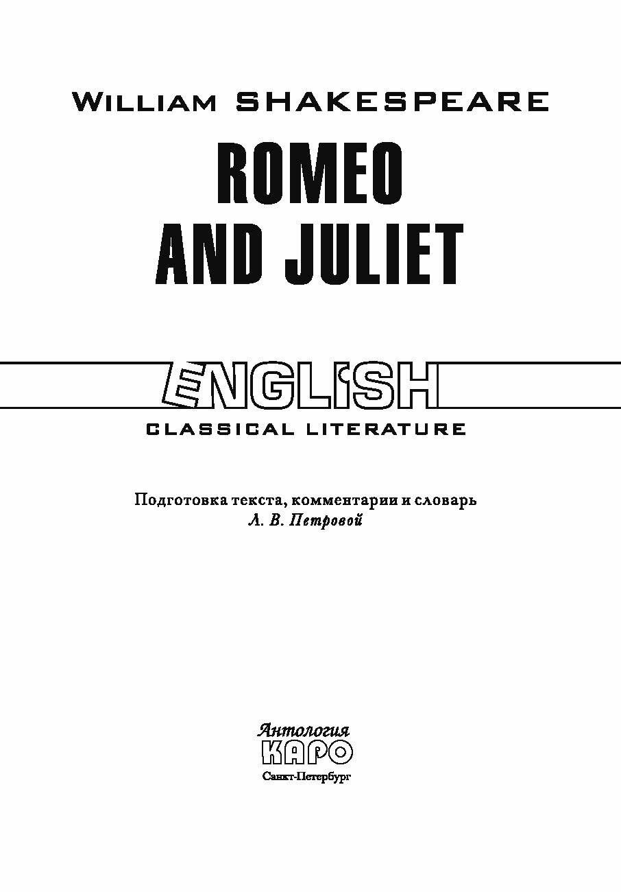 Romeo and Juliet: Ромео и Джульетта. Книга для чтения на английском языке (Уильям Шекспир); КАРО, 2016
