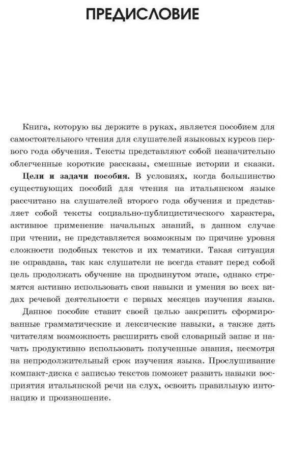 Предлагаемая вниманию изучающих итальянский язык книга явля-ется пособием по чтению для слушателей языковых курсов первого года обучения. Тексты представляют собой короткие рассказы, смешные исто-рии и сказки.