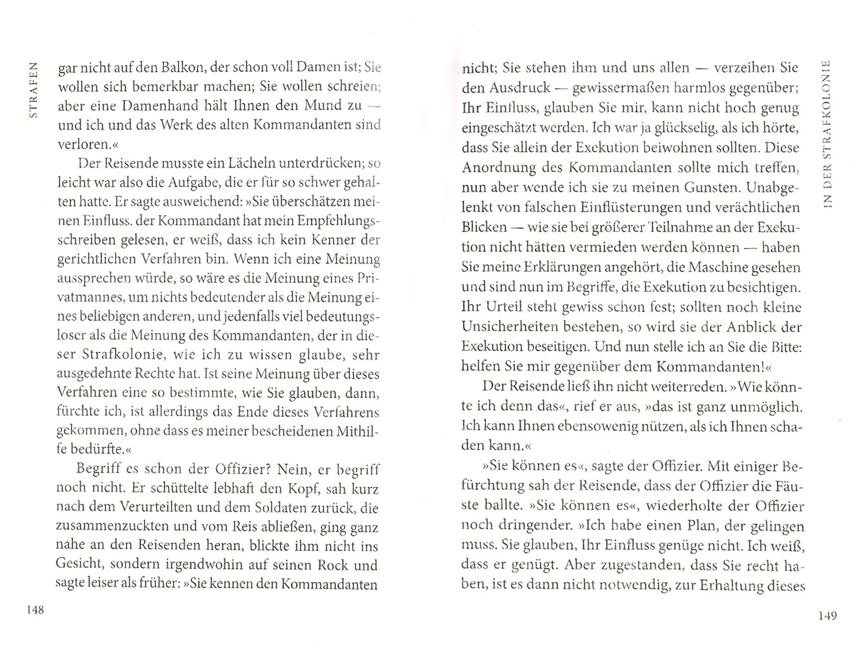 Хороший сборник кафкианских рассказов и притч. Книга значительная по объему, содержит как самые известные произведения Кафки ("Превращение", "Приговор"), так и менее известные. Текст рассказов неадаптированный. Произведениям предпослана небольшая литературоведческая статья составителя книжки Нины Гильченок на русском языке. По тексту рассказов иногда встречаются комментарии составителя (очень редкие), есть словарик в конце. В целом форма рассказа (литературного произведения небольшого объема) удобна для изучающих язык. Несомненно, произведения Кафки гениальны. Вполне можно читать, начиная с уровня В2.