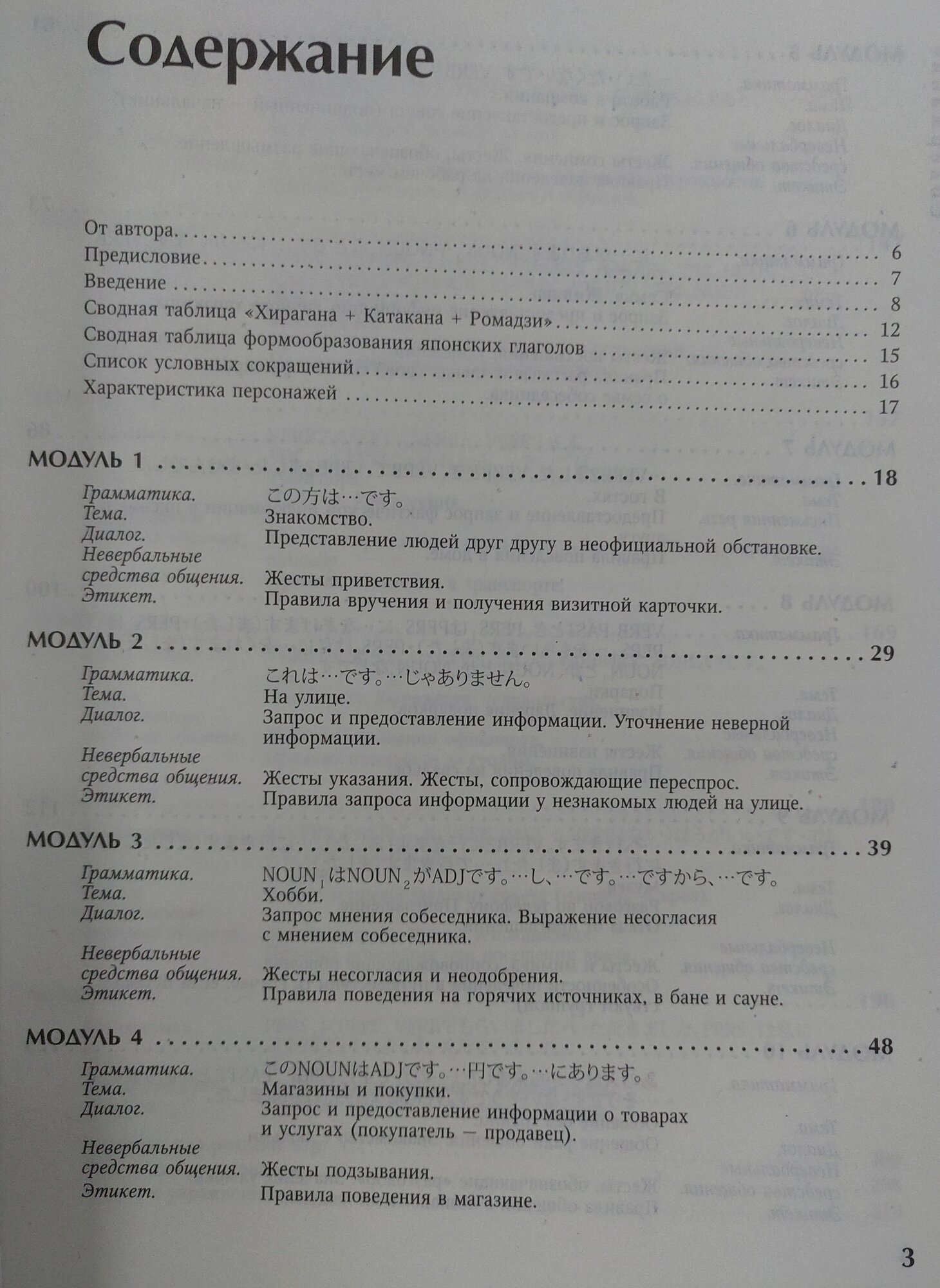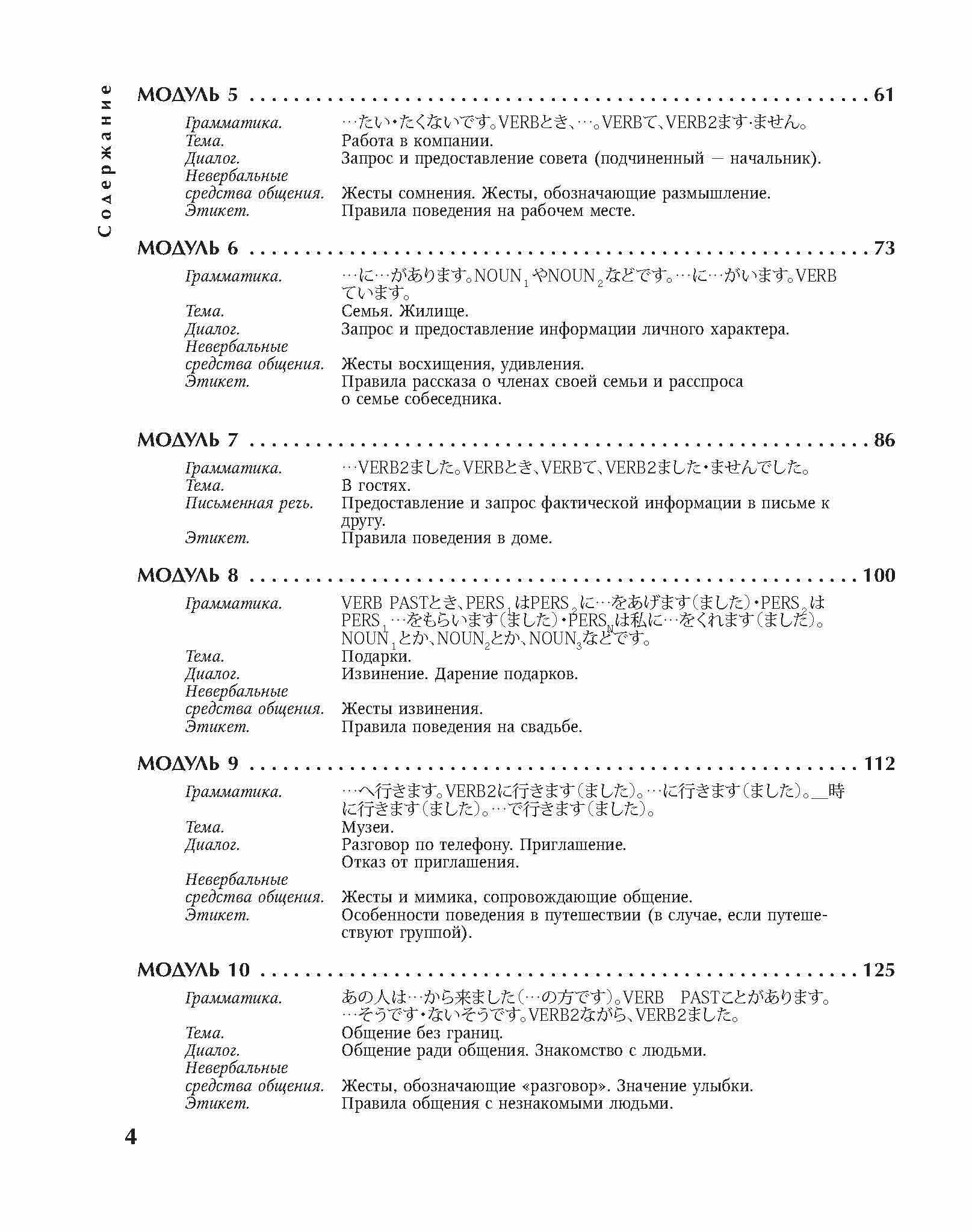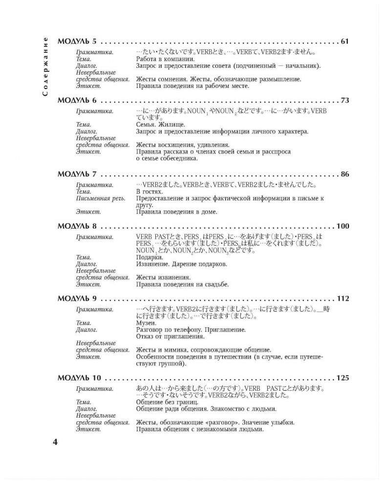 Это издание не на японском языке. Это практикум по японскому языку на русском. Состоит из 16 модулей, каждый из которых разбирает определенную ситуацию - "знакомство", "хобби", "в магазине", "у врача", "поздравление с Новым годом" и т.п.