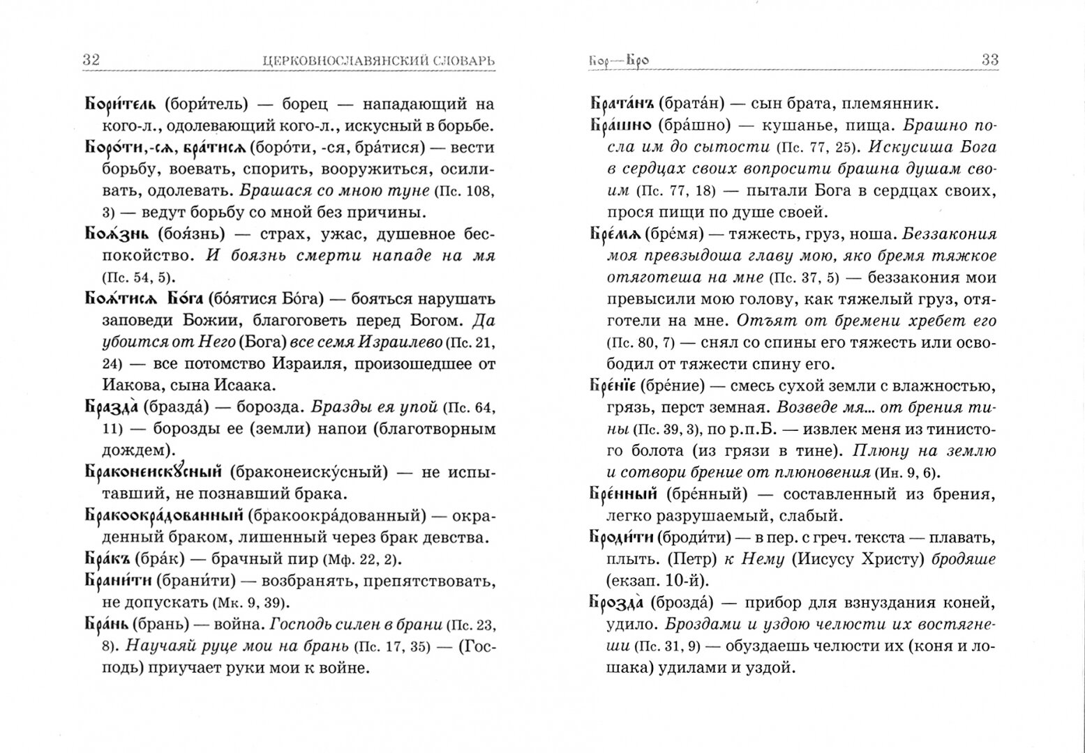 В словаре даны краткие сведения о богослужебных и учебных книгах, суточном богослужебном круге, церковнославянская азбука, числа, произношение некоторых букв, их употребление, сведения о надстрочных знаках, знаках препинания, сокращения, принятые в Писании, краткие сведения о правильном произношении в церковнославянском языке.