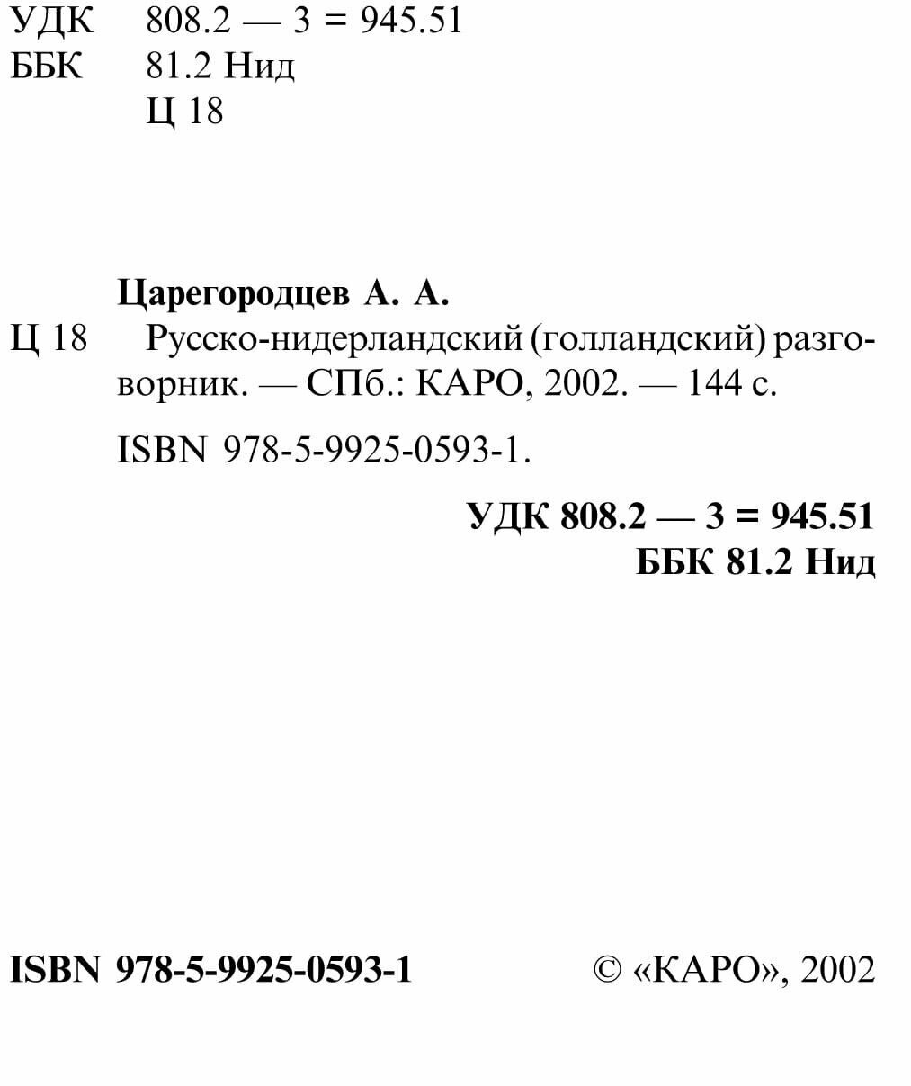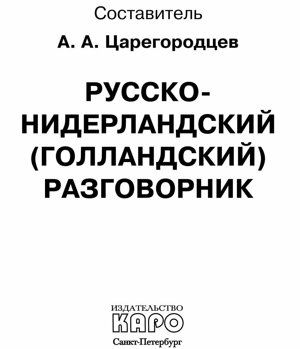 Русско-нидерландский разговорник (А. А. Царегородцев); КАРО, 2002